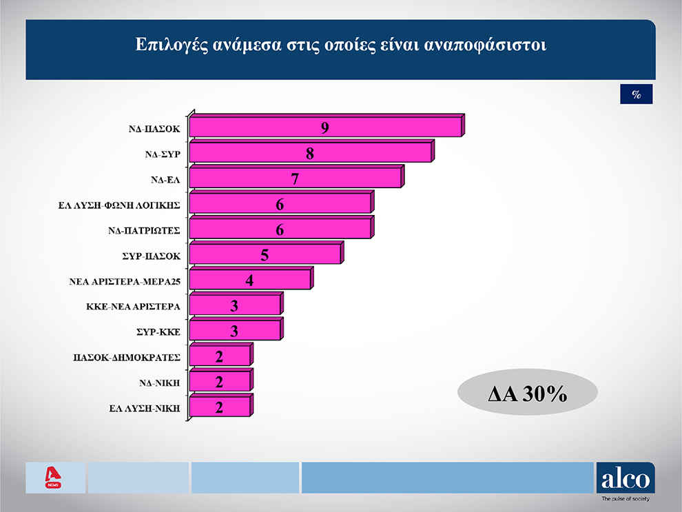 Ερωτώμενοι ανάμεσα σε ποια δύο κόμματα θα επιλέξουν, οι αναποφάσιστοι απαντούν: