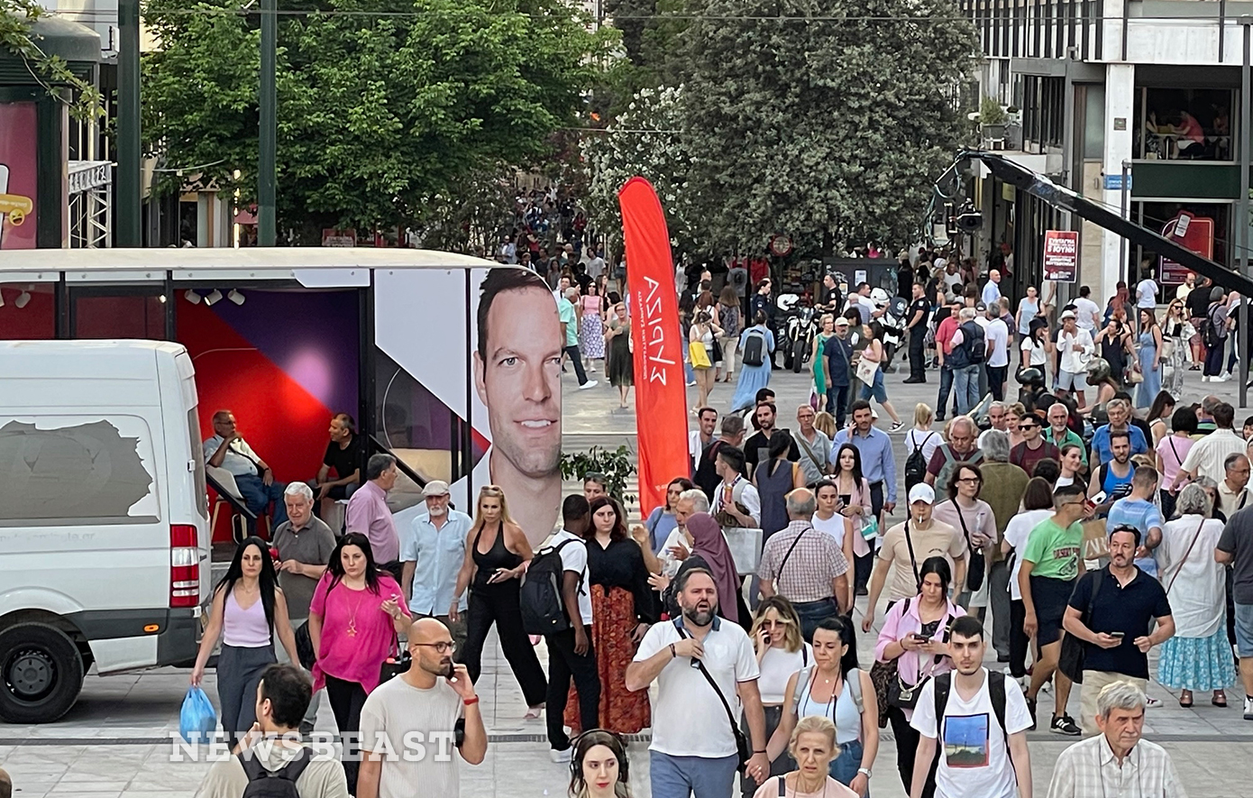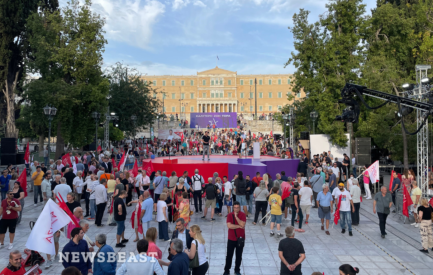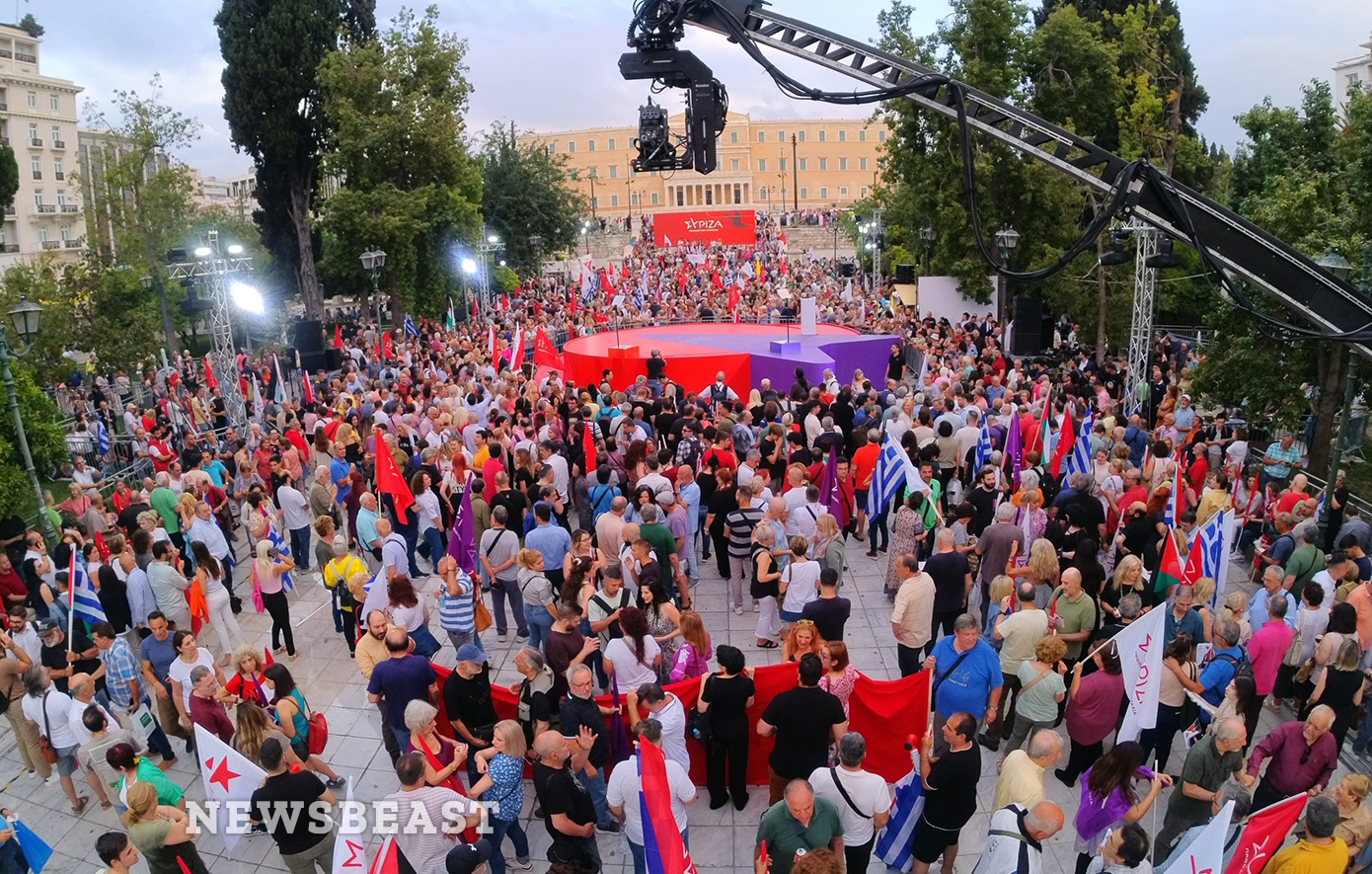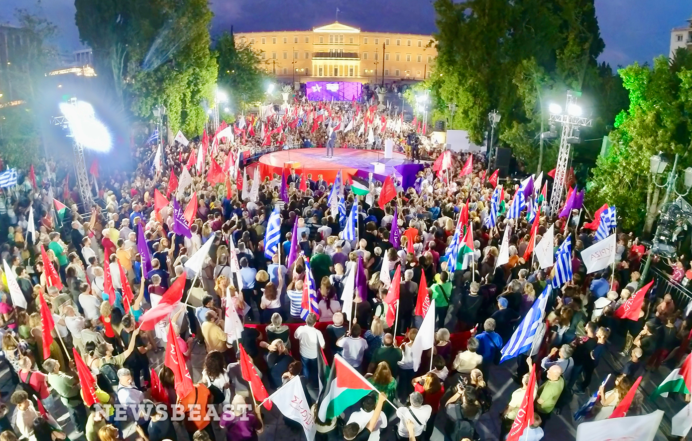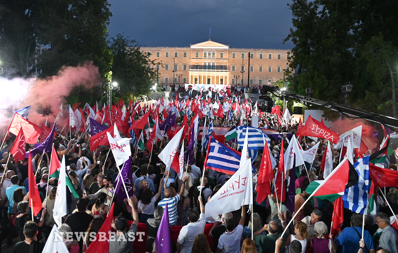Στην κεντρική προεκλογική εκδήλωση του ΣΥΡΙΖΑ, στην πλατεία Συντάγματος, μιλά ο Στέφανος Κασσελάκης, λίγα 24ωρα πριν ανοίξουν οι κάλπες για τις ευρωεκλογές της 9ης Ιουνίου.
