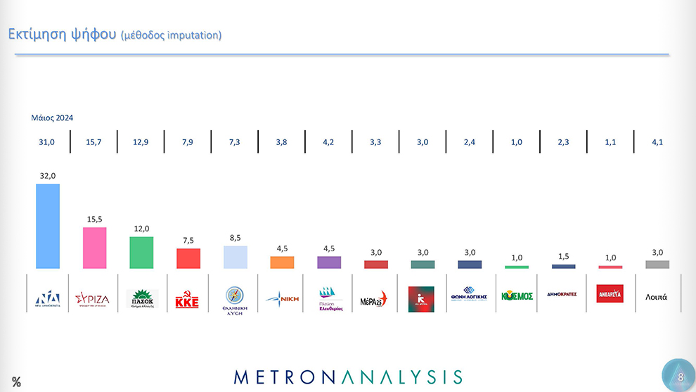 Στην εκτίμηση ψήφου τα αντίστοιχα ποσοστά διαμορφώνονται ως εξής: