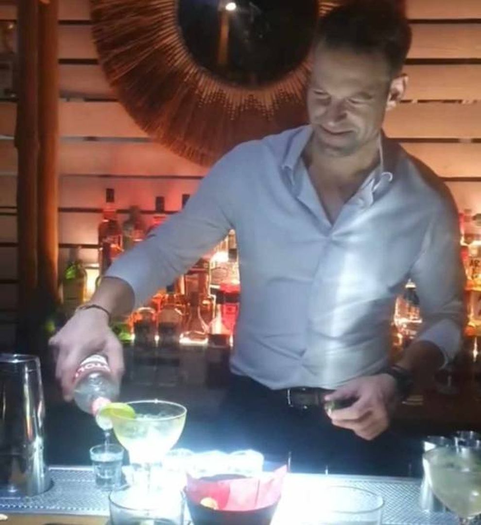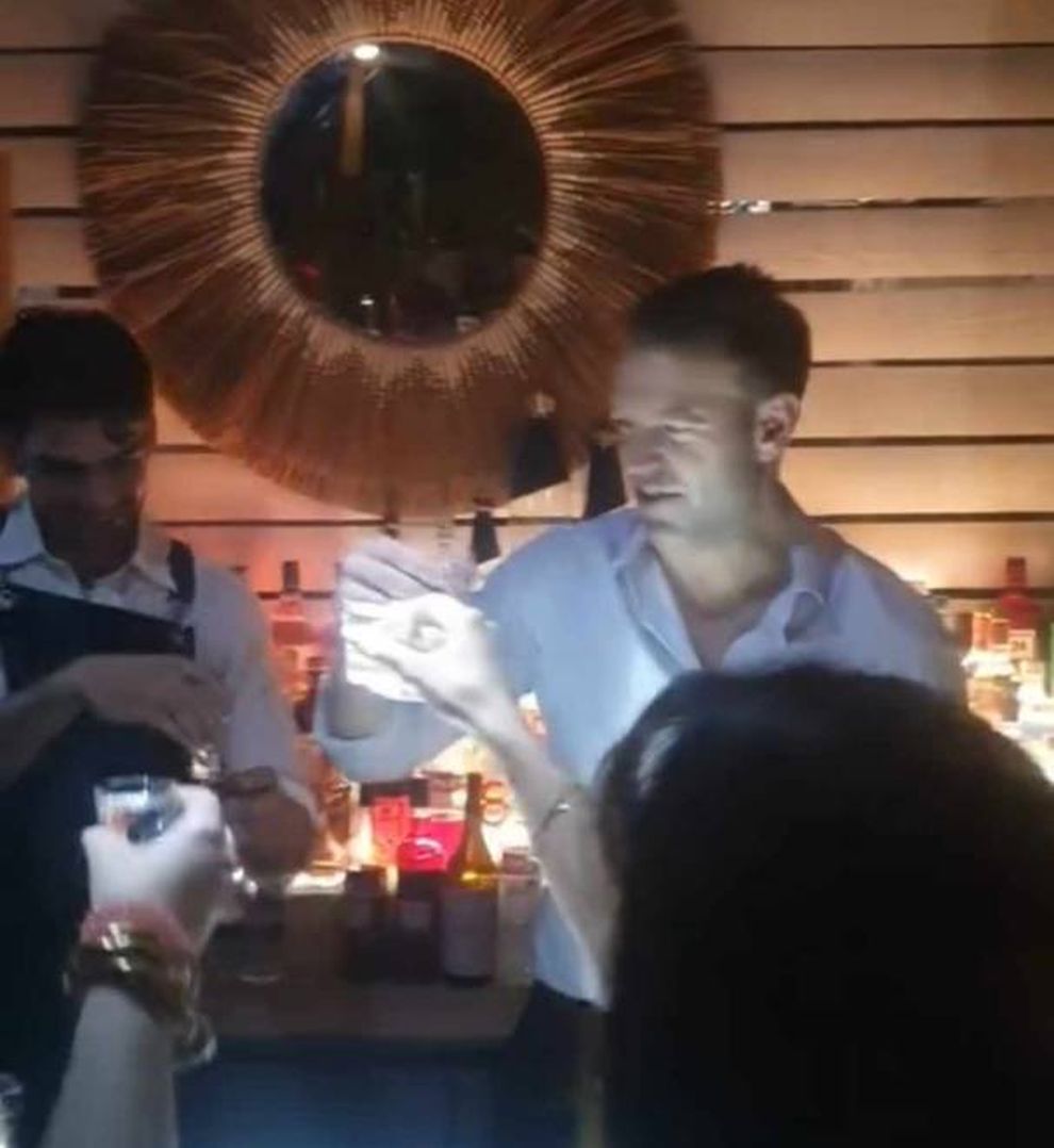 Έτσι δεν άργησε να περάσει μέσα από το μπαρ και να σερβίρει σφηνάκια στον κόσμο που βρέθηκε μαζί του, όπως φαίνεται και στα φωτογραφικά στιγμιότυπα που δημοσιεύει το tempo24.