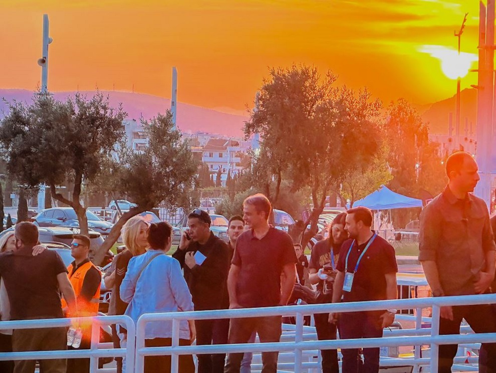 Ο πρωθυπουργός πήγε στη συναυλία με casual look, μαζί με τη σύζυγό του, Μαρέβα Γκραμπόφσκι-Μητσοτάκη, το απόγευμα του Σαββάτου, για να απολαύσει τη μουσική του δημοφιλούς συγκροτήματος.