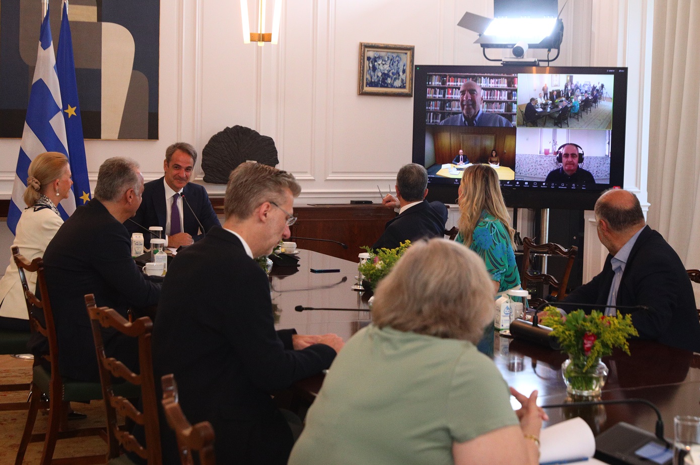 Παρόντες στη συνάντηση ήταν και ο υπουργός Επικρατείας Άκης Σκέρτσος, η υφυπουργός Εξωτερικών Αλεξάνδρα Παπαδοπούλου και ο βουλευτής Σερρών και γραμματέας Διεθνών Σχέσεων της ΝΔ, Τάσος Χατζηβασιλείου.