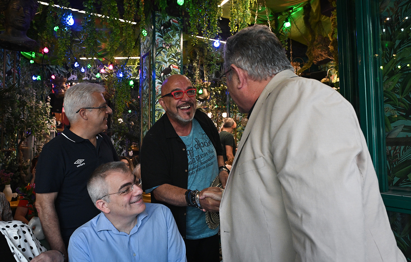 Ο καλλιτέχνης είχε έναν θερμό χαιρετισμό με τον γγ του ΚΚΕ, ενώ ΤΟΥ ευχήθηκε καλή επιτυχία για τις εκλογές.