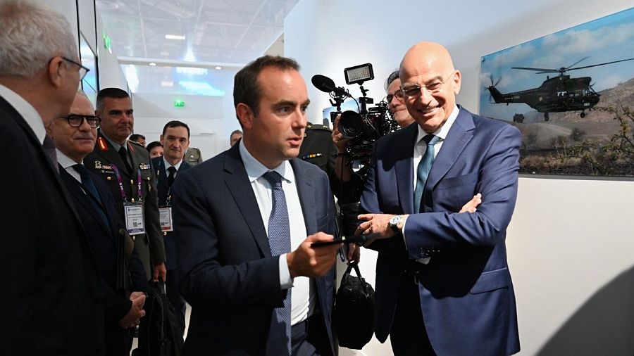 Κατά την τελετή, ο Έλληνας υπουργός έκοψε από κοινού την κορδέλα των εγκαινίων της έκθεσης με τον υπουργό ‘Αμυνας της Γαλλίας Sébastien Lecornu, μετά από πρόσκληση του ομολόγου του.
