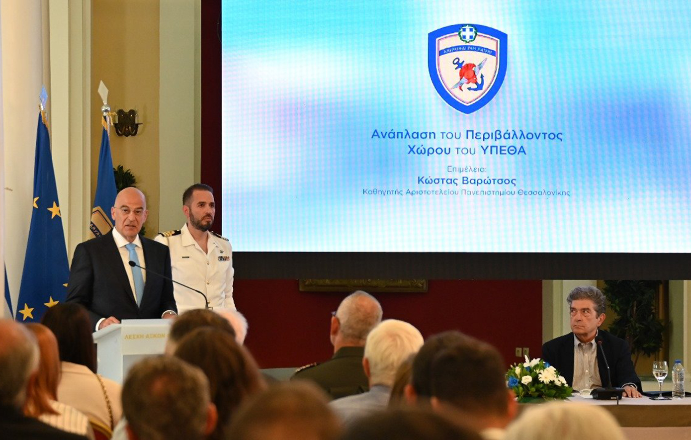 Ο Υπουργός Εθνικής Άμυνας Νίκος Δένδιας, παρέστη σήμερα στην παρουσίαση του έργου του Καθηγητή του Αριστοτελείου Πανεπιστημίου Θεσσαλονίκης Κωνσταντίνου Βαρώτσου «Ανάπλαση του Περιβάλλοντος Χώρου του ΥΠΕΘΑ», που πραγματοποιήθηκε στη Λέσχη Αξιωματικών Ενόπλων Δυνάμεων (ΛΑΕΔ). Στην παρουσίαση παραβρέθηκαν επίσης, ο αρχηγός ΓΕΕΘΑ στρατηγός Δημήτριος Χούπης, ο γενικός γραμματέας του υπουργείου Εθνικής ‘Αμυνας Αντώνιος Οικονόμου, ο αρχηγός ΓΕΣ αντιστράτηγος Γεώργιος Κωστίδης, ο αρχηγός ΓΕΝ αντιναύαρχος Δημήτριος Κατάρας ΠΝ, ο αρχηγός ΓΕΑ αντιπτέραρχος (Ι) Δημοσθένης Γρηγοριάδης, ο πρόεδρος του Ιδρύματος «Αικατερίνη Λασκαρίδη» υποναύαρχος ε.τ. Παναγιώτης Κ. Λασκαρίδης ΠΝ, στελέχη των Ενόπλων Δυνάμεων κ.ά.