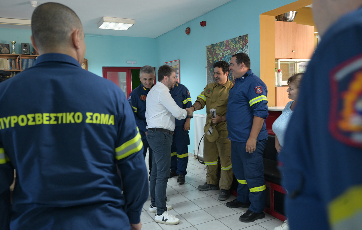 Ο Νίκος Ανδρουλάκης συνομίλησε με τους άνδρες του Πυροσβεστικού Σώματος, τους εποχικούς πυροσβέστες και τους εθελοντές που συνδράμουν κάθε καλοκαίρι. Εξέφρασε την ευγνωμοσύνη μου για τη προσφορά τους σε όλη την Ελλάδα, ενώ σημείωσε πως τα χρόνια που έρχονται θα είναι ακόμη δυσκολότερα, όπως λέει η επιστημονική κοινότητα.