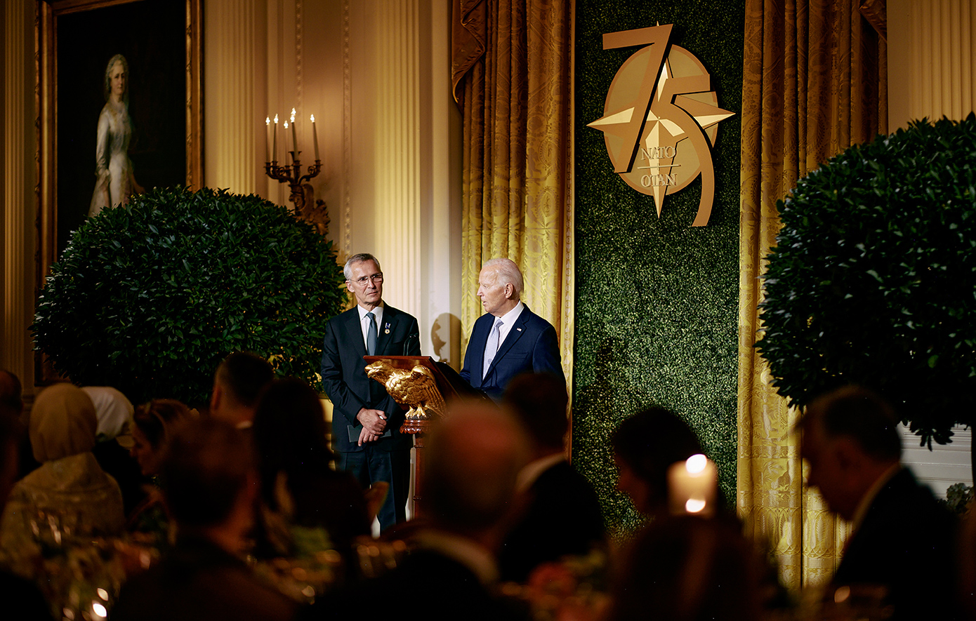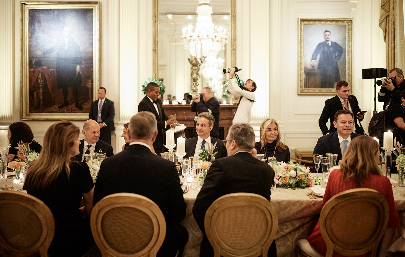 Ο πρόεδρος των ΗΠΑ, Τζο Μπάιντεν, παρέθεσε χθες το βράδυ δείπνο στον Λευκό Οίκο προς τιμήν των ηγετών των κρατών-μελών του ΝΑΤΟ. Εκεί ήταν και ο πρωθυπουργός, Κυριάκος Μητσοτάκης, με τη σύζυγό του, Μαρέβα Γκραμπόφσκι-Μητσοτάκη.