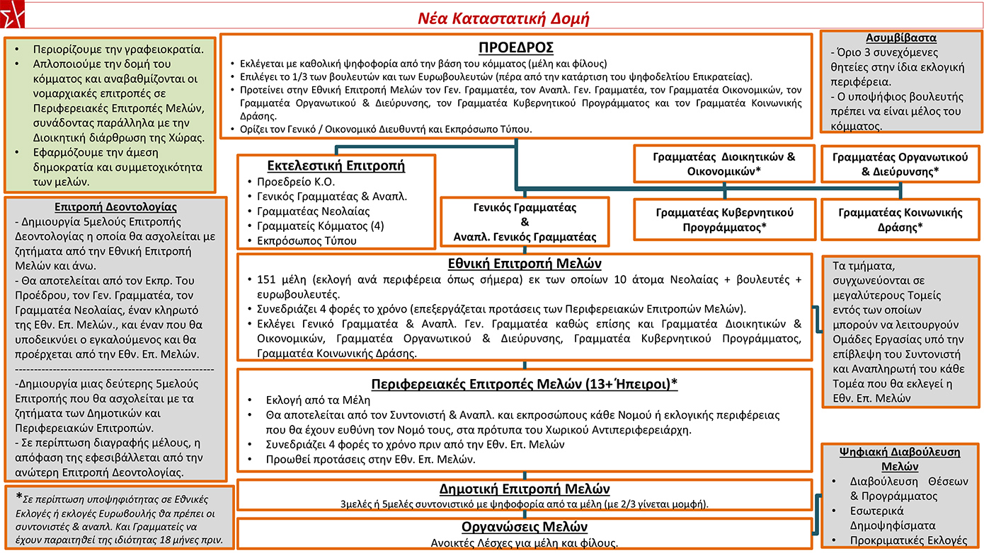 Όσον αφορά τους βουλευτές και τους ευρωβουλευτές θα συμμετάσχουν στο ένα και μοναδικό όργανο, το οποίο θα είναι το Εθνικό Συμβούλιο. Οι προωθούμενες αλλαγές θα τεθούν σε διαβούλευση και θα παρουσιαστούν στη συνεδρίαση της Κεντρικής Επιτροπής το ερχόμενο Σαββατοκύριακο (7-8/9).