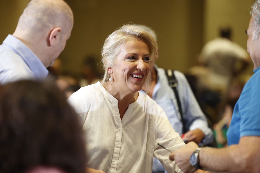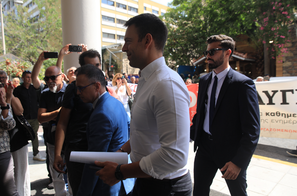 Κατά την έναρξη της διαδικασίας που άρχισε με μιάμιση ώρα καθυστέρηση εργαζόμενοι της «Αυγής» και του «Στο Κόκκινο» περίμεναν τον Στέφανο Κασσελάκη και μετά μπήκαν συνθήματα φωνάζοντας συνθήματα.