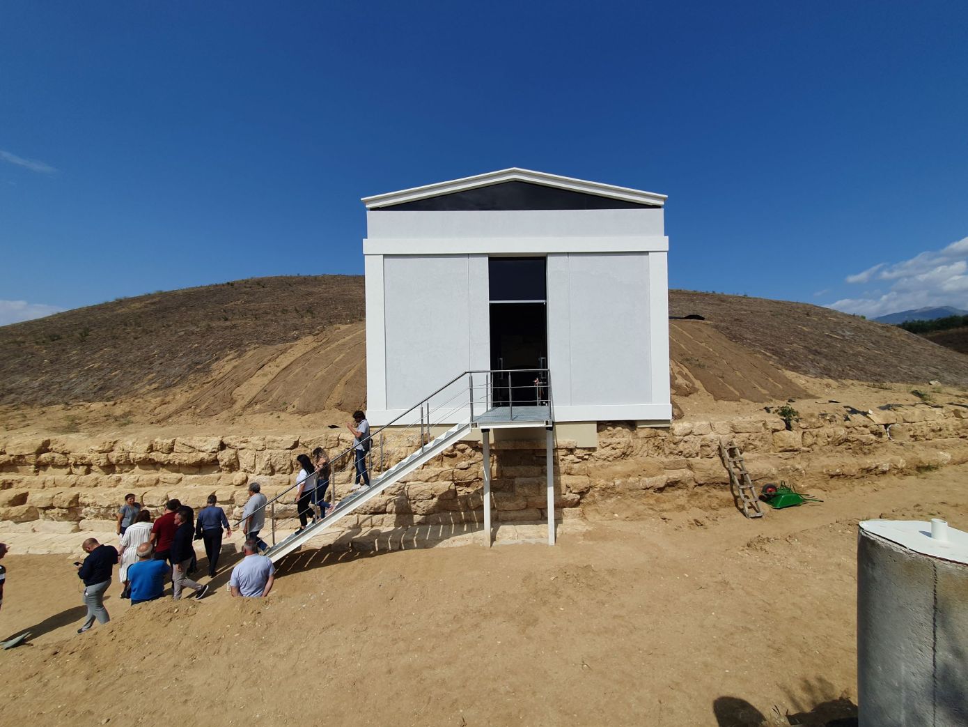 Η Λίνα Μενδώνη σημείωσε τέλος όλο αυτό το διάστημα στο εξωτερικό του μνημείου εκτελούνται από τις αρμόδιες υπηρεσίες του ΥΠΠΟ εργασίες συντήρησης, ενώ υπάρχουν ειδικά μηχανήματα που παρακολουθούν συνεχώς την συμπεριφορά του μνημείου. Εκείνο που πρέπει να τονιστεί επίσης είναι ότι στην είσοδο του μνημείου τοποθετήθηκε ένα στέγαστρο -κέλυφος, σύμφωνα με την εγκεκριμένη μελέτη από το ΚΑΣ, που εξασφαλίζει καλύτερη- ασφαλέστερη πρόσβαση αλλά και την προστασία στο εσωτερικό του τύμβου.