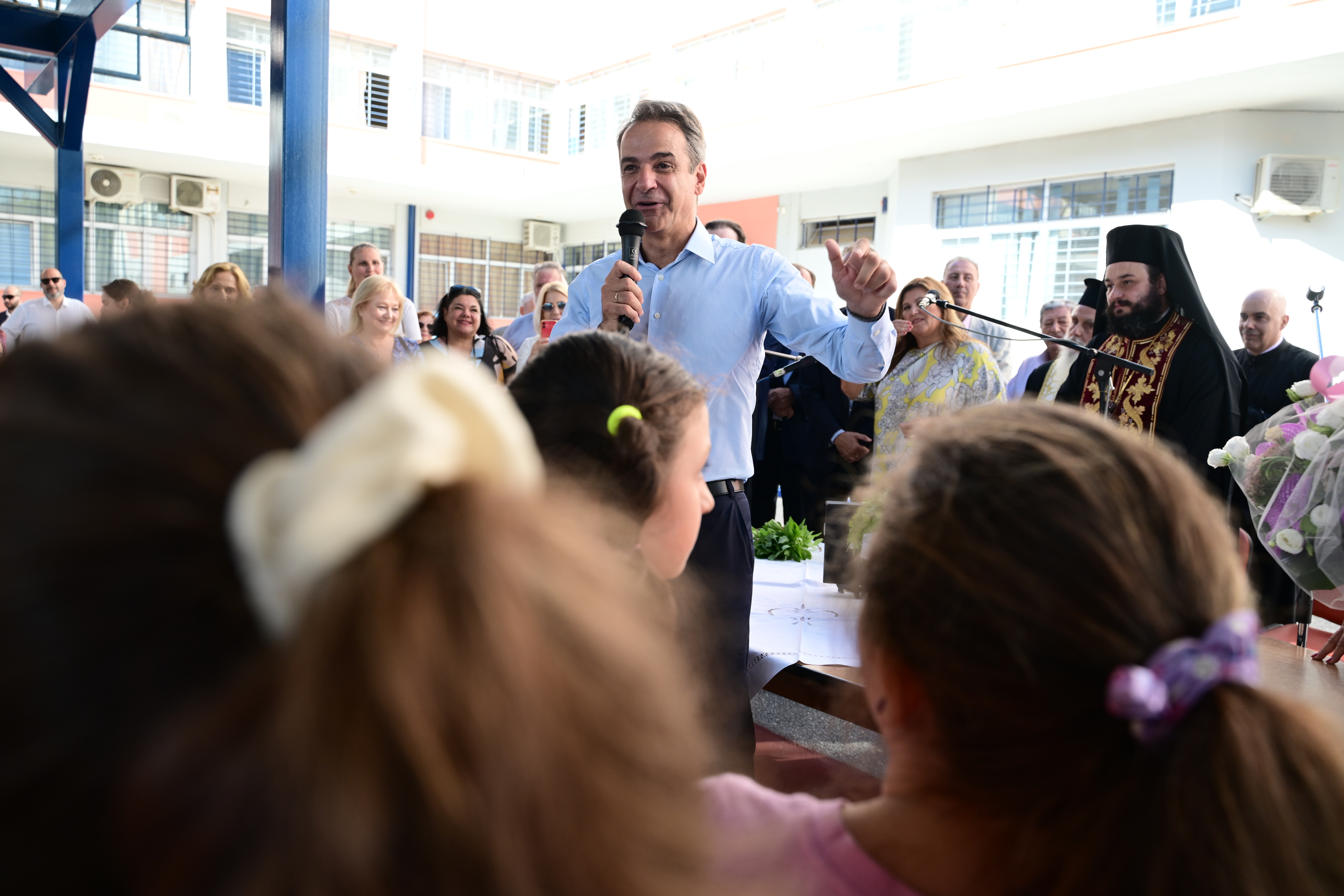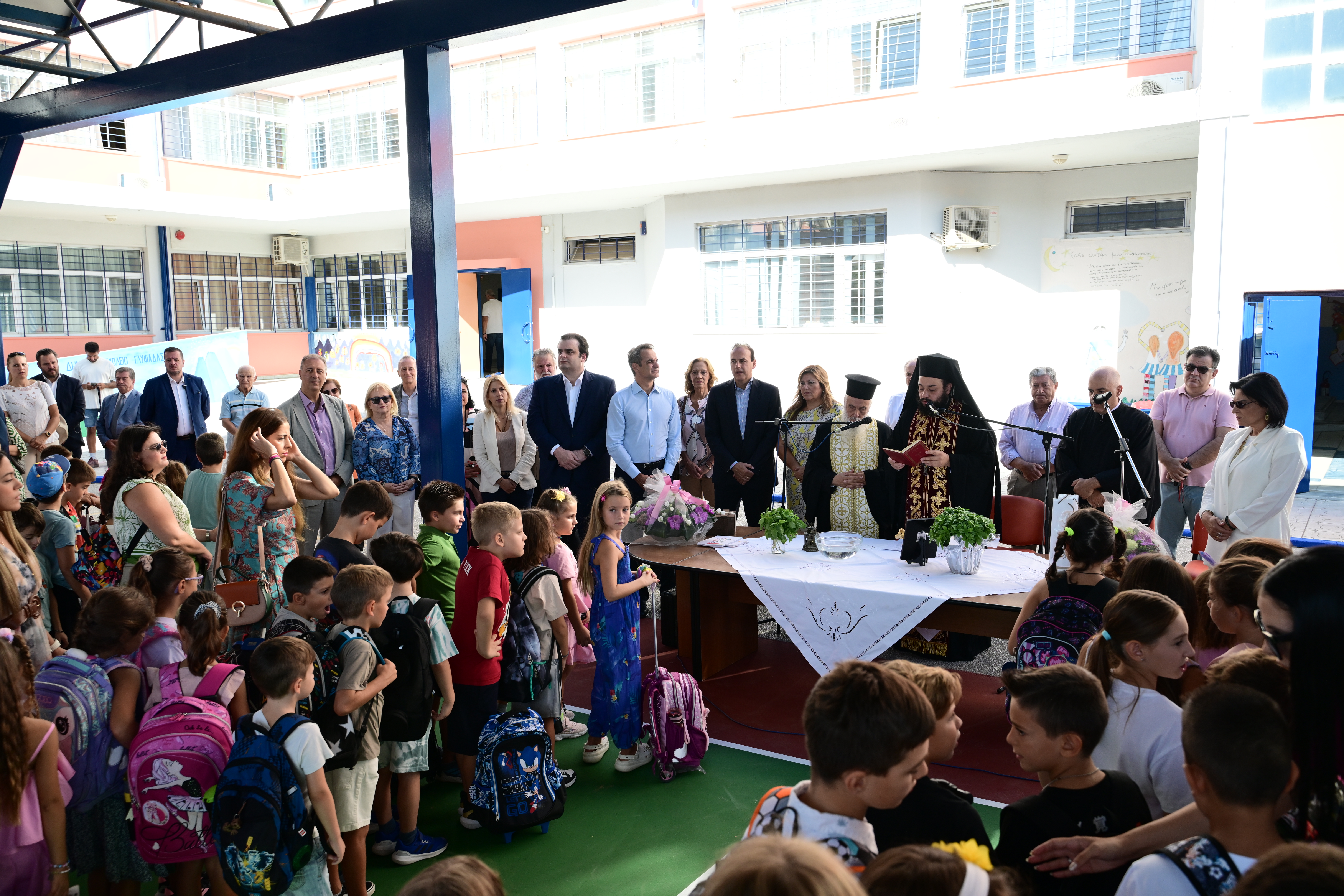 Στο 2ο Δημοτικό Σχολείο Γλυφάδας για την έναρξη της νέας σχολικής χρονιάς παρευρέθη ο πρωθυπουργός, Κυριάκος Μητσοτάκης, και ο υπουργός Παιδείας Θρησκευμάτων και Αθλητισμού, Κυριάκος Πιερρακάκης, συνοδευόμενοι από τον δήμαρχο Γλυφάδας, Γιώργο Παπανικολάου, για τον καθιερωμένο αγιασμό.