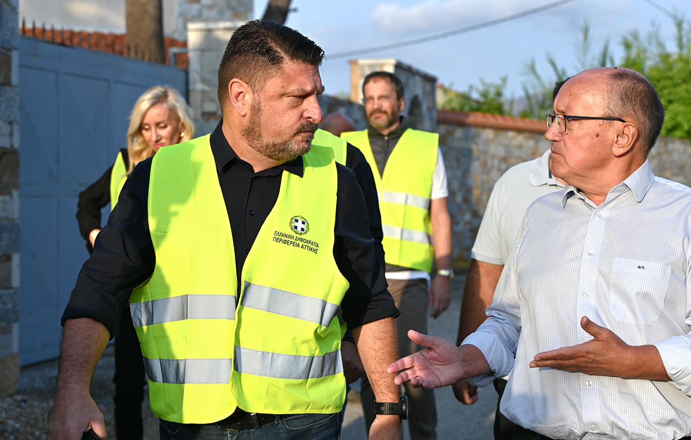Τον Περιφερειάρχη Αττικής, που πραγματοποίησε την αυτοψία μαζί με τον Δήμαρχο Μαραθώνα Στέργιο Τσίρκα, συνόδευσαν η Ειδική Γραμματέας της Περιφέρειας Αττικής Έλενα Ράπτη, ο Διευθυντής Τεχνικών Υπηρεσιών Ανατολικής Αττικής Γιώργος Ψαρομιχαλάκης, εκπρόσωπος της αναδόχου εταιρείας που έχει αναλάβει το έργο και μηχανικοί της Περιφέρειας Αττικής.