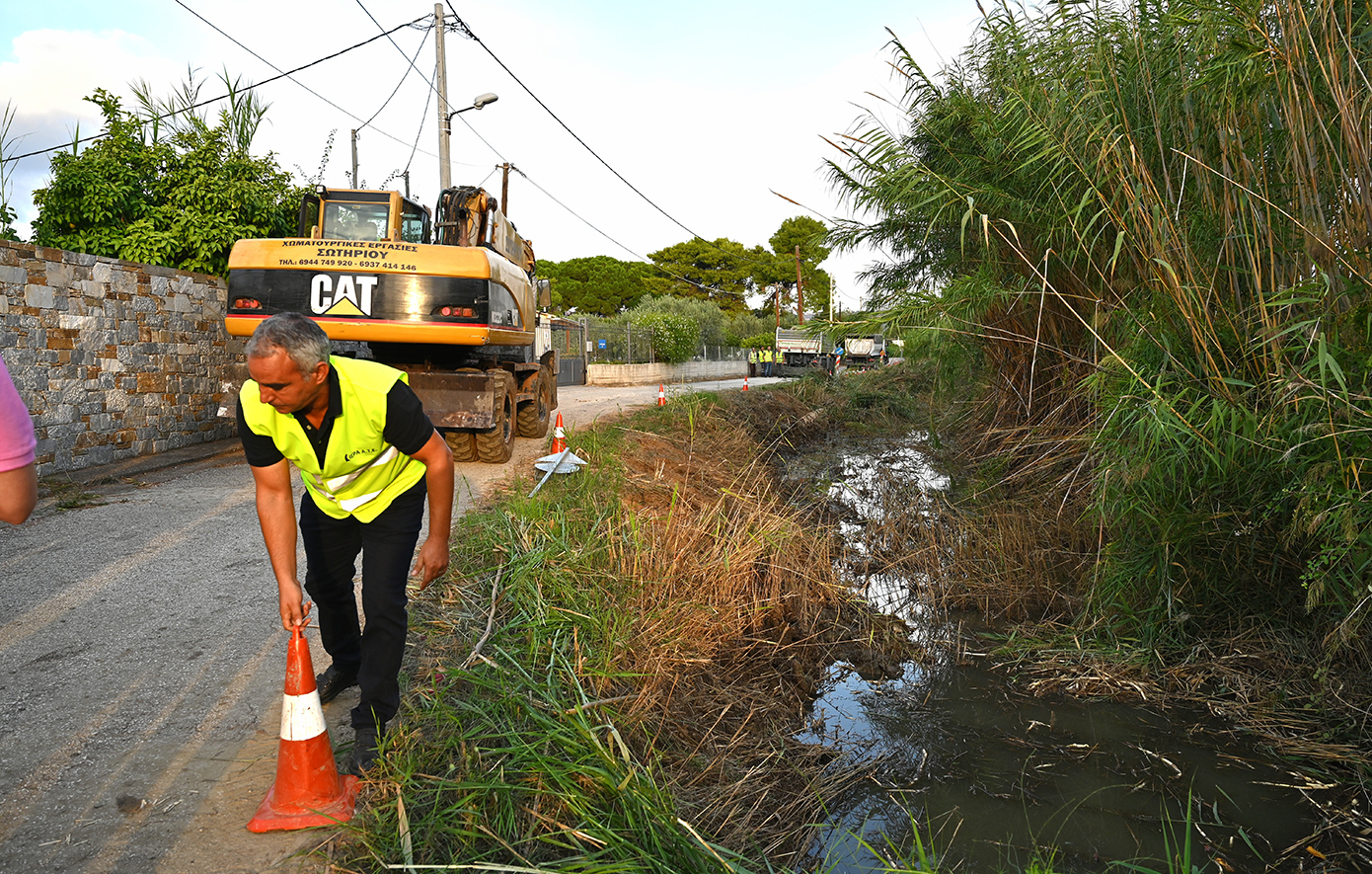 Ειδικά τώρα για τον Δήμο Μαραθώνα όπου βρισκόμαστε σήμερα, αμέσως μετά την πυρκαγιά του φετινού Αυγούστου, έχει ήδη καθαριστεί το μεγαλύτερο τμήμα του ρέματος Ραπεντώσας, ολοκληρώνονται σύντομα οι εργασίες εδώ στο ρέμα Καινούργιο σε μία έκταση 2,5 χιλιομέτρων και συνεχίζουμε και στο ρέμα Μαρούγκα».