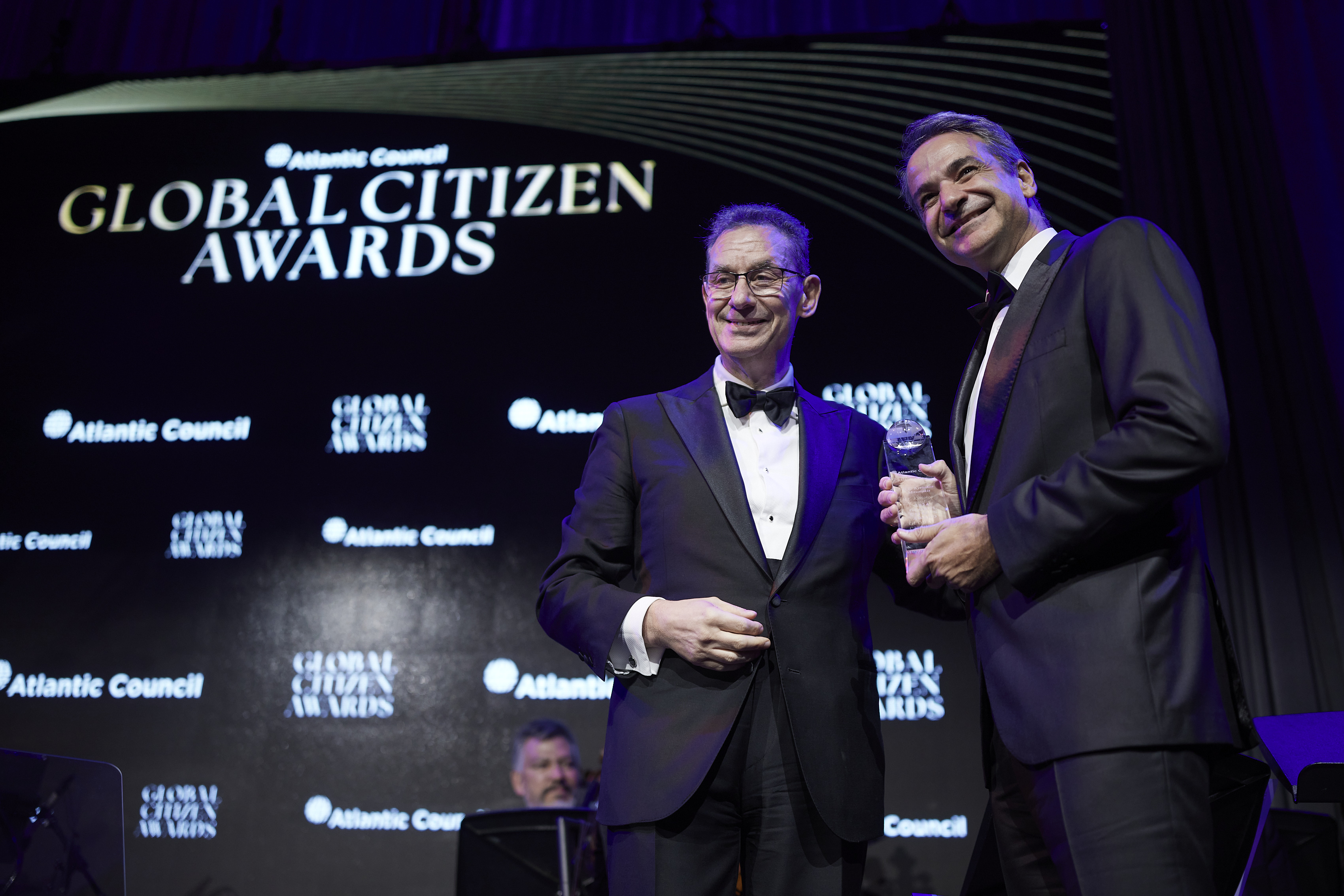Ο Κυριάκος Μητσοτάκης, βραβεύτηκε ως αναγνώριση για «την αξιοσημείωτη σταδιοδρομία του τόσο στη δημόσια διοίκηση, όσο και στον ιδιωτικό τομέα, καθώς και για τις ηγετικές του ικανότητες στη διακυβέρνηση της χώρας αλλά και στις διατλαντικές, ευρωπαϊκές και παγκόσμιες υποθέσεις».