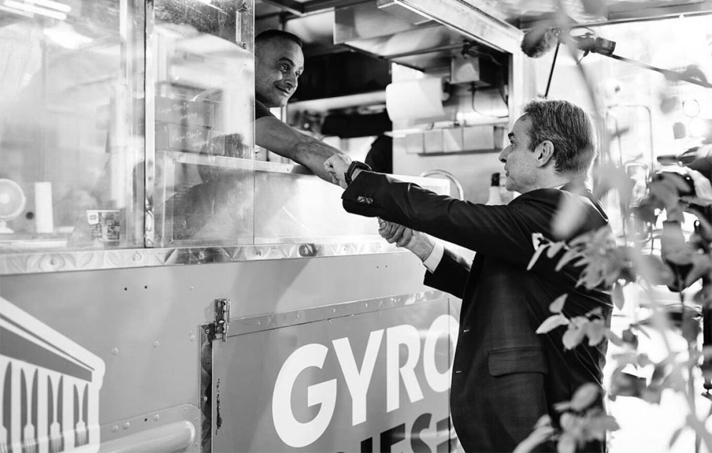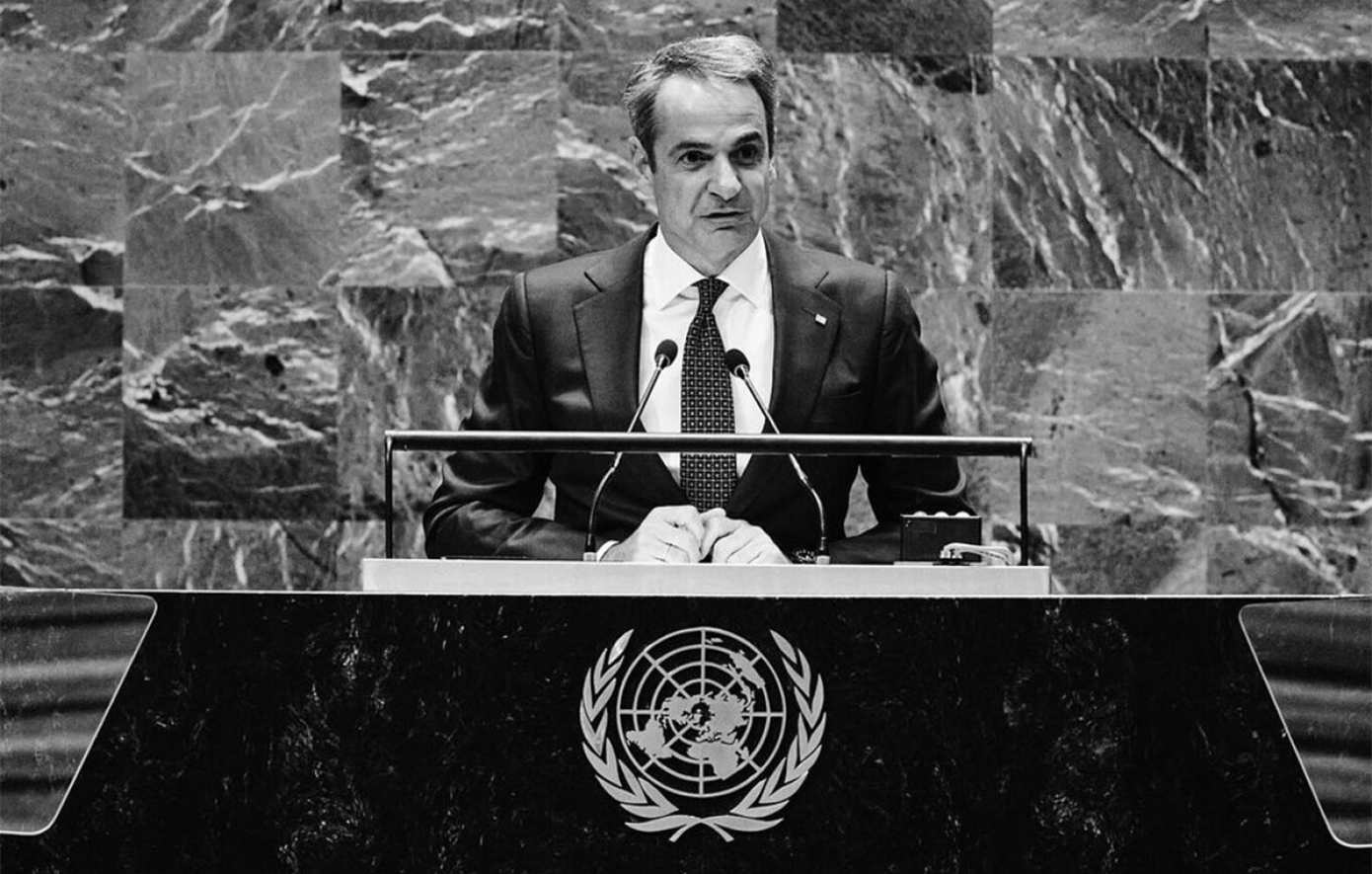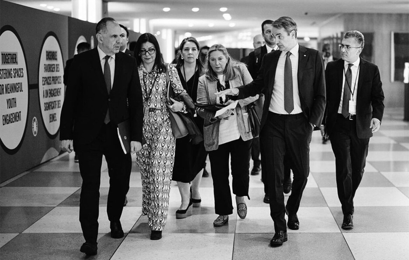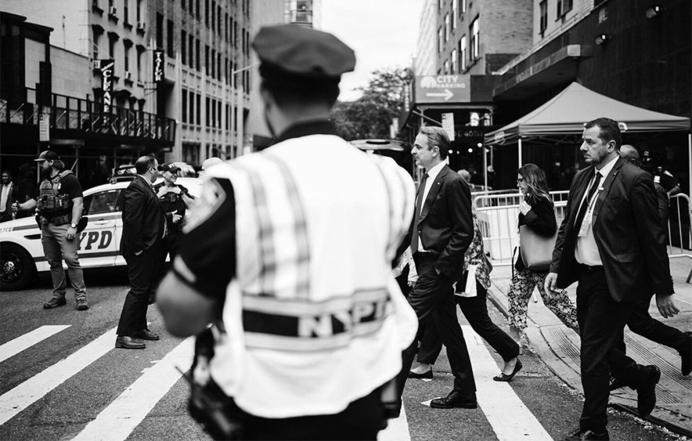 Μεταξύ των 18 ασπρόμαυρων φωτογραφίες του πρωθυπουργού περιλαμβάνονται καρέ από την ομιλία του στη Γενική Συνέλευση του ΟΗΕ, από την παρουσία του στην τελετή του Atlantic Council όπου βραβεύτηκε ως Global Citizen 2024, από την τριμερή συνάντηση με τον Εμανουέλ Μακρόν και τον Νίκο Χριστοδουλίδη, από το ιδιαιτέρως σημαντικό τετ α τετ με τον Ρετζέπ Ταγίπ Ερντογάν, από την παρουσία του στη συνάντηση για τη στήριξη της Ουκρανίας, από τη συνέντευξή του στο CNN όπως επίσης και από την τυχαία συνάντηση που είχε με Έλληνα σουβλατζή στη Νέα Υόρκη.