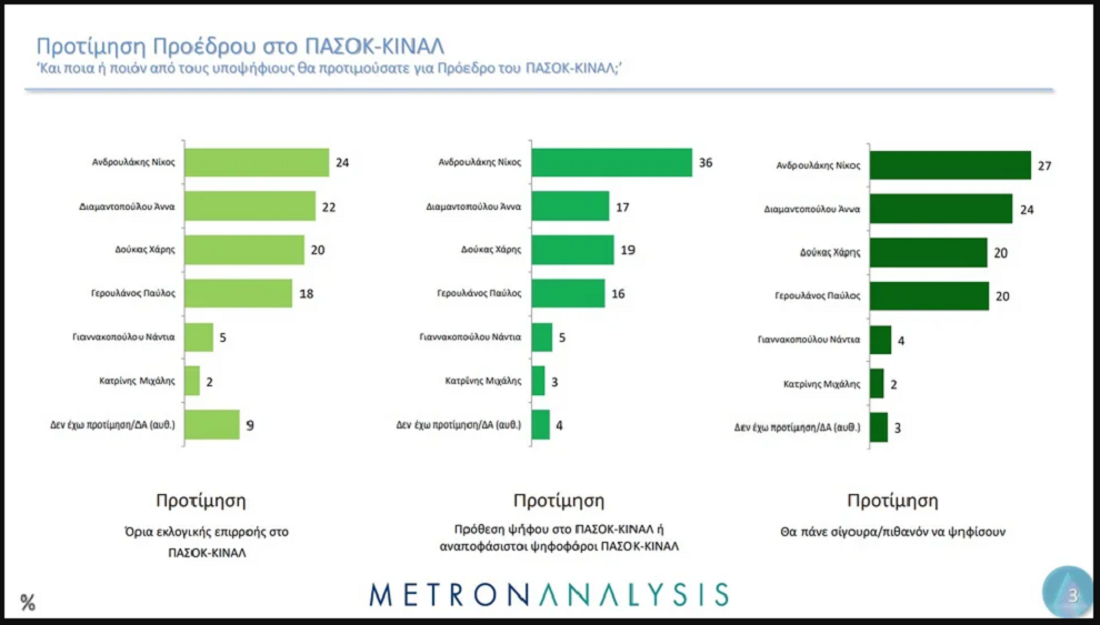 Η δημοσκόπηση της Metron Analysis εξέτασε μεταξύ άλλων τις προτιμήσεις των ψηφοφόρων για τις εσωκομματικές εκλογές στο ΠΑΣΟΚ.