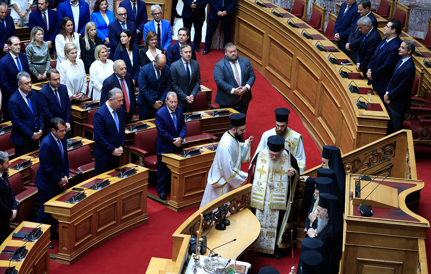 Παρουσία του πρωθυπουργού Κυριάκου Μητσοτάκη, προέδρων Κοινοβουλευτικών Ομάδων, υπουργών και βουλευτών πραγματοποιήθηκε σήμερα, Δευτέρα 7/10 ο καθιερωμένος αγιασμός για την έναρξη των εργασιών της Β’ Συνόδου της Κ’ Κοινοβουλευτικής Περιόδου της Βουλής των Ελλήνων.