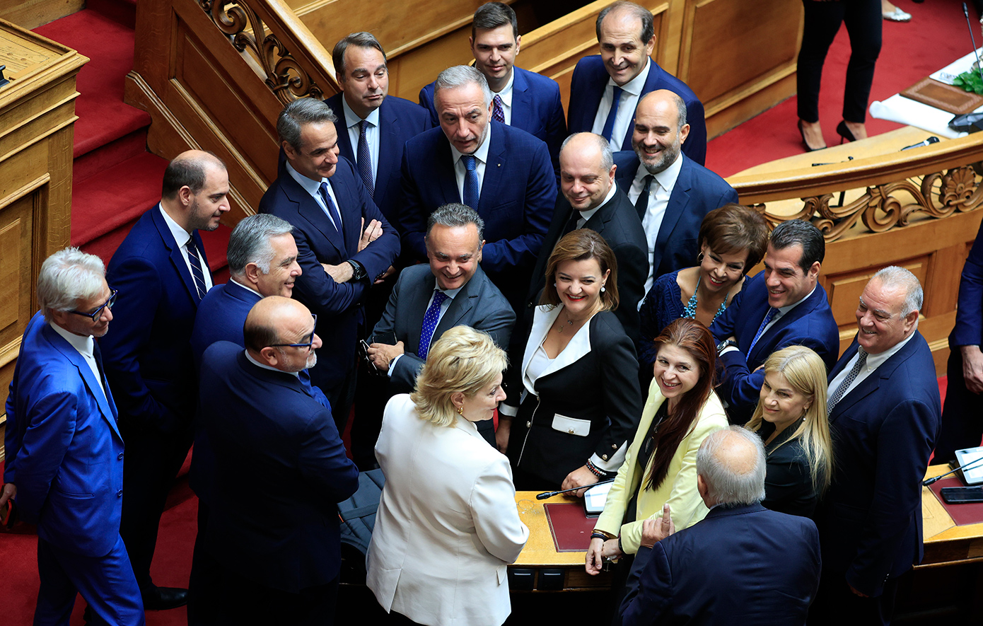 Στα υπουργικά έδρανα παρόντες ήταν ο υπουργός Εσωτερικών Θεόδωρος Λιβάνιος, ο υπουργός Επικρατείας Μάκης Βορίδης, ο υπουργός Περιβάλλοντος και Ενέργειας Θεόδωρος Σκυλακάκης, ο υπουργός Ανάπτυξης Τάκης Θεοδωρικάκος.