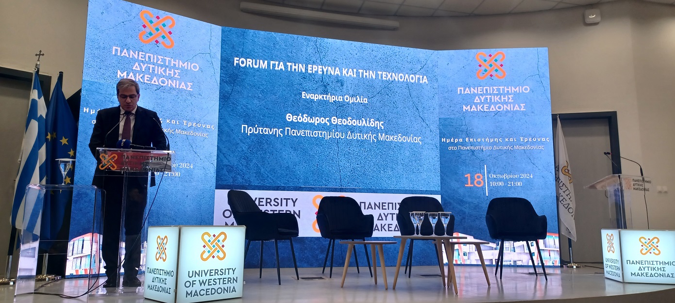Αναφέρθηκε στη συμμετοχή του Πανεπιστημίου Δυτικής Μακεδονίας στη Ζώνη Καινοτομίας που θα χωροθετηθεί εντός του πανεπιστημίου, «φιλοξενώντας θερμοκοιτίδες νέας τεχνολογίας, διασυνδέοντας την ακαδημαϊκή και φοιτητική κοινότητα με τις επιχειρήσεις».