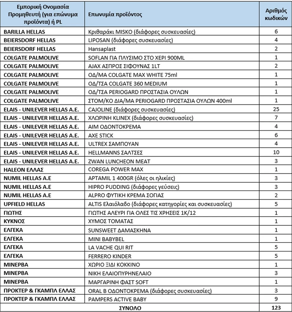 Μέσα στην προσπάθεια αυτή είναι και η μείωση των τιμών από 6% έως και 15% 123 προϊόντων, με το υπουργείο να δημοσιεύει τη λίστα η οποία εμπεριέχει αυτά τα αγαθά.