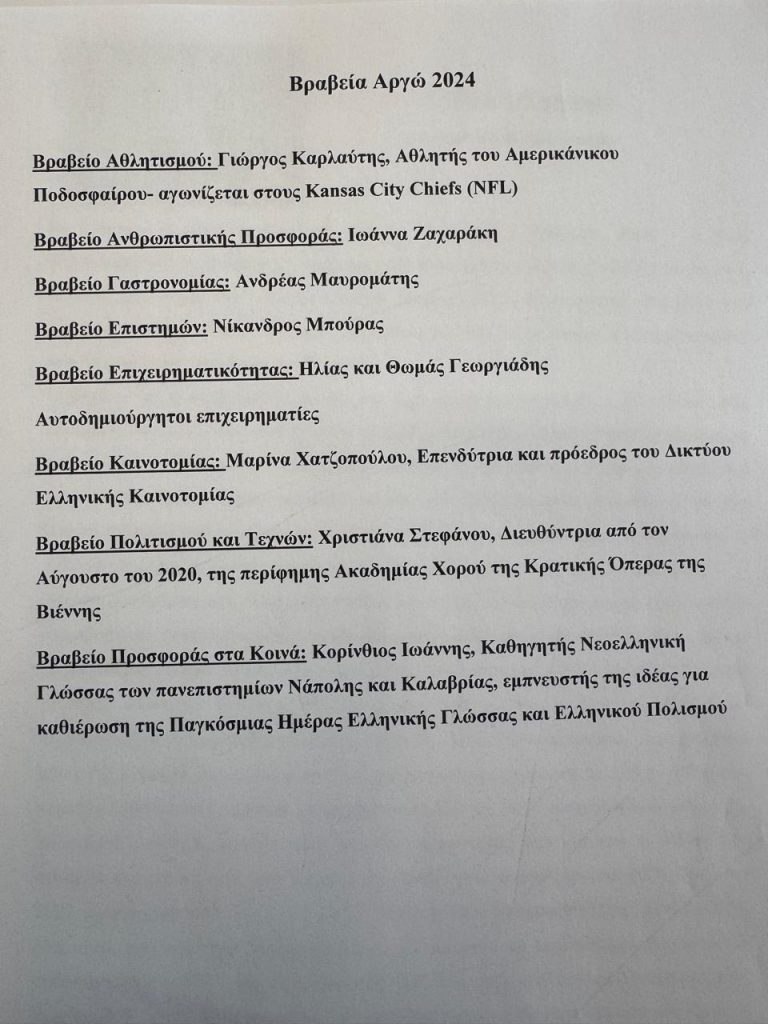 Η Πρόεδρος της Δημοκρατίας Κατερίνα Σακελλαροπούλου επέδωσε απόψε τα Βραβεία ΑΡΓΩ, σε τελετή που διοργάνωσε η Διεθνής Ένωση «ΑΡΓΩ – ΔΙΚΤΥΟ ΕΛΛΗΝΩΝ ΒΡΥΞΕΛΛΩΝ» στην Ακαδημία Αθηνών, υπογραμμίζοντας ότι: «Σήμερα, βραβεύουμε την Ελλάδα της εξωστρέφειας, του κοσμοπολιτισμού, της δημιουργικής έμπνευσης».