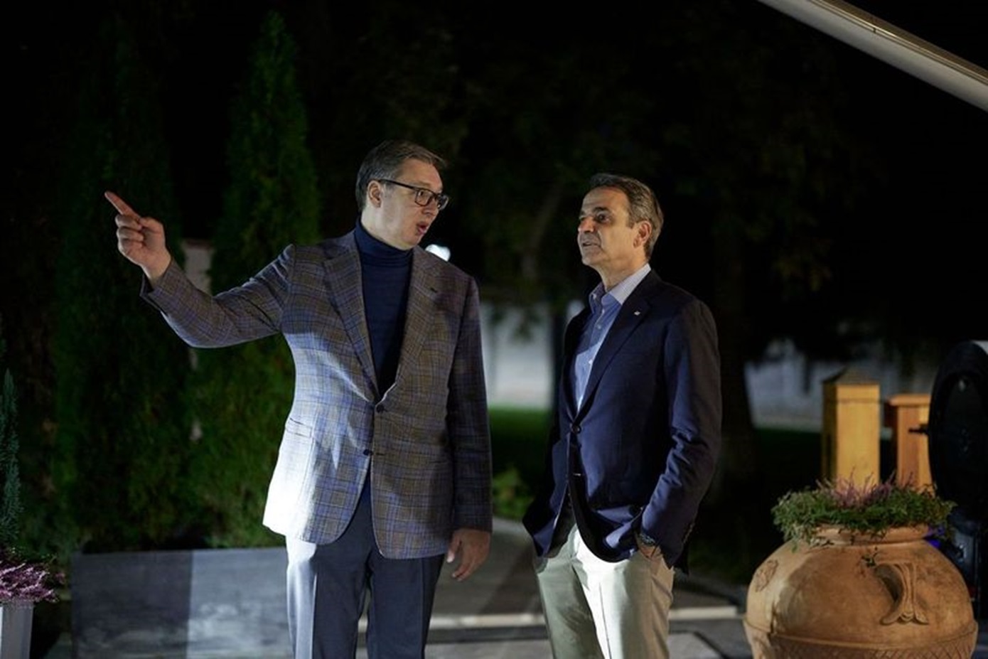Κατά τη διάρκεια του δείπνου ο πρωθυπουργός και ο Πρόεδρος της Σερβίας επιβεβαίωσαν τις άριστες σχέσεις Ελλάδας-Σερβίας και συζήτησαν για τις προτεραιότητες σε όλο το φάσμα των διμερών σχέσεων. Ο Κυριάκος Μητσοτάκης επανέλαβε τη σταθερή στήριξη της Ελλάδας στην ευρωπαϊκή προοπτική της Σερβίας και των Δυτικών Βαλκανίων.