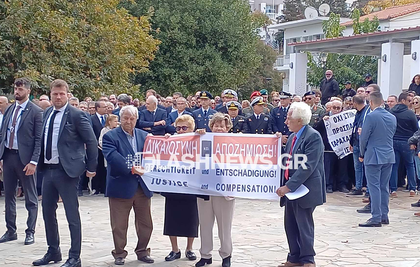 Ωστόσο οι χθεσινές του δηλώσεις στην Πρόεδρο της Ελληνικής Δημοκρατίας για το θέμα των αποζημιώσεων, το οποίο χαρακτήρισε νομικά λήξαν, προκάλεσε την αντίδραση των συλλογών και σωματείων μαρτυρικών χωριών που είχαν συγκεντρωθεί σήμερα στην Κάντανο, όπως μεταδίδει το flashnews.gr.