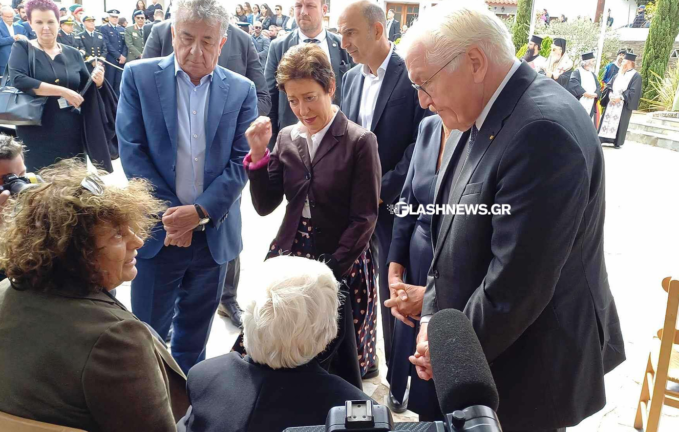 Μόλις έφτασε στην Καντανο, ο γερμανός πρόεδρος συνομίλησε με επιζώντες, ωστόσο εκπρόσωποι σωματείων των μαρτυρικών χωριών με συνθήματα και πανό ζητούσαν δικαίωση, διεκδικώντας αποζημιώσεις.
