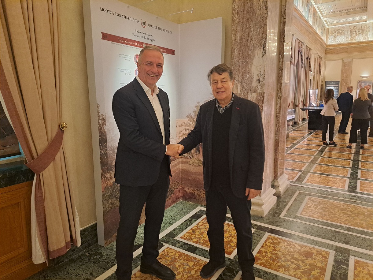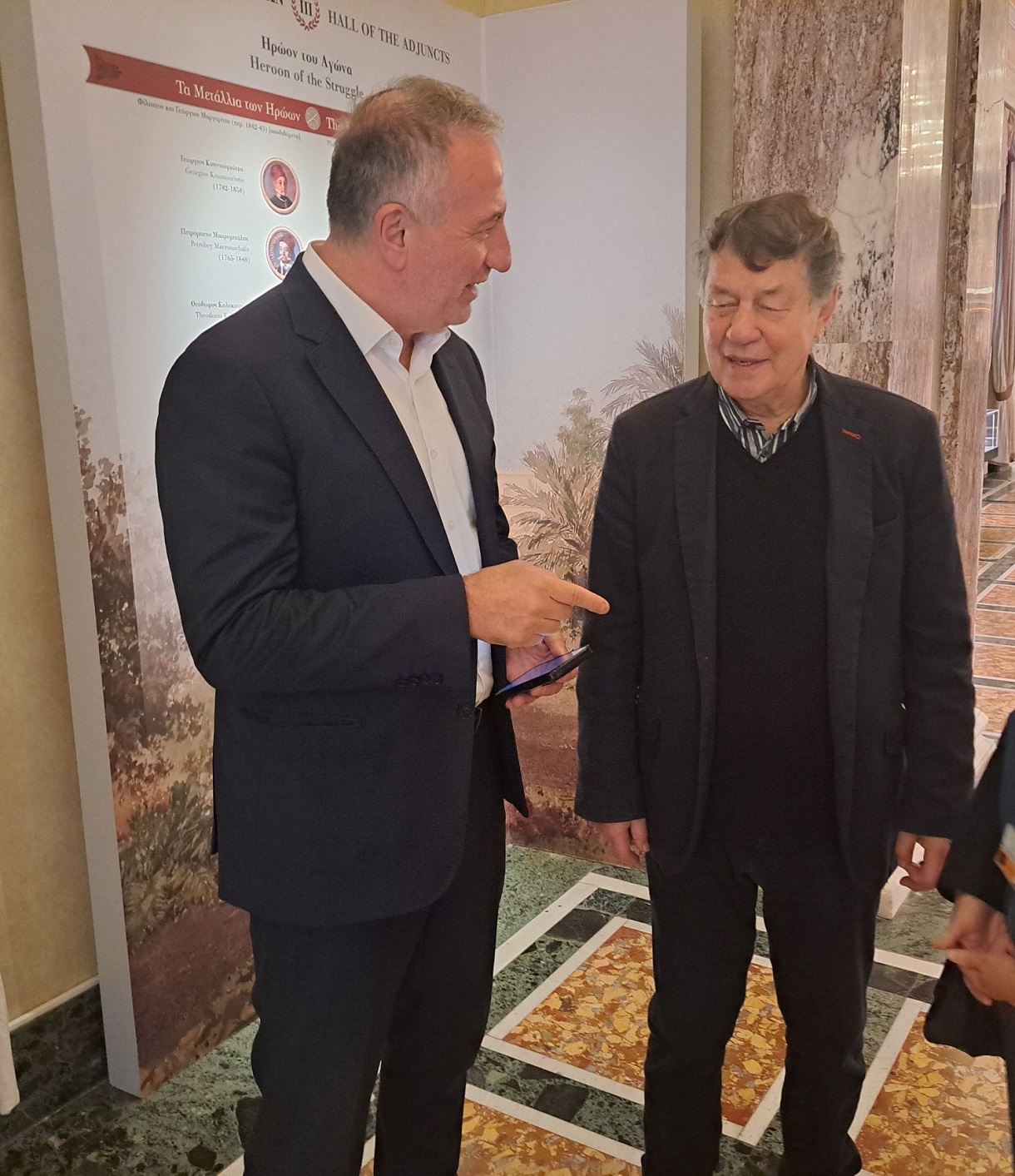 Τις μεγάλες στιγμές του Euro θυμήθηκαν χθες στη Βουλή Σταύρος Καλαφάτης και Ότο Ρεχάγκελ. Μια τυχαία συνάντηση γεμάτη από μνήμες και στιγμές που έφτασαν την Ελλάδα στα ουράνια. Ο Ότο Ρεχάγκελ, συμμετέχοντας στην αποστολή του Γερμανού Προέδρου Σταϊνμάιερ στην Ελλάδα, ξέκλεψε λίγη ώρα για να επισκεφθεί και να ξεναγηθεί στη Βουλή των Ελλήνων. Την ώρα εκείνη έξω από την αίθουσα Τροπαίων διέρχονταν ο Γενικός Γραμματέας της Κ.Ο. της Νέας Δημοκρατίας Βουλευτής Α’ Θεσσαλονίκης, Σταύρος Καλαφάτης.