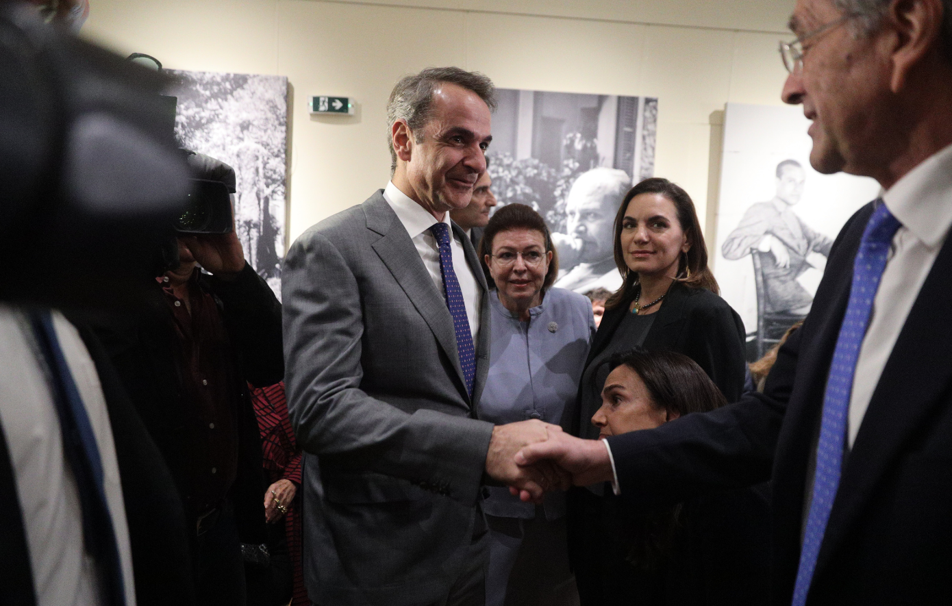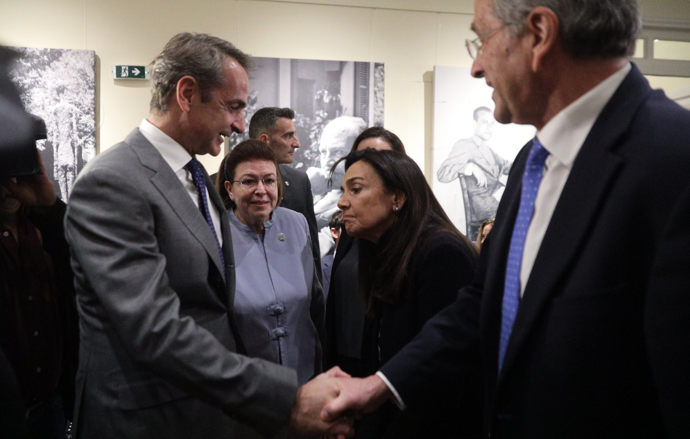 Ο Κυριάκος Μητσοτάκης συναντήθηκε ξανά με τον Αντώνη Σαμαρά στα εγκαίνια του «Σπιτιού του Ελύτη» στην Πλάκα, με τους δύο άνδρες να ανταλλάσουν χειραψία ακόμη μία φορά.