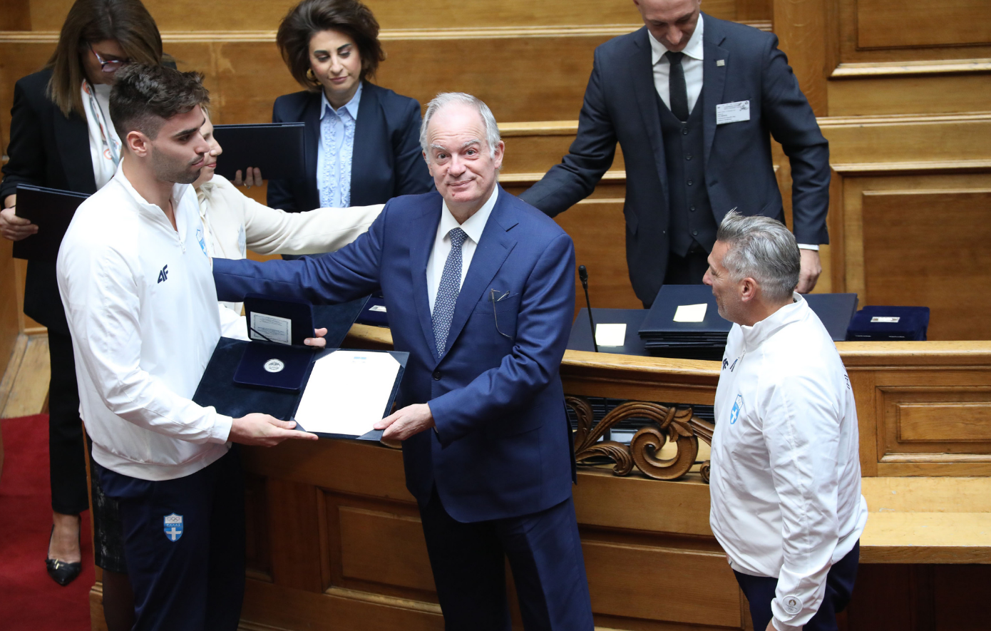 Στην τιμητική εκδήλωση στην Ολομέλεια της Βουλής, τον Πρωθυπουργό κ. Κυριάκο Μητσοτάκη εκπροσώπησε ο Αναπληρωτής Υπουργός Παιδείας, Θρησκευμάτων και Αθλητισμού, κ. Ιωάννης Βρούτσης, ο οποίος τόνισε πως «θέλουμε έναν αθλητισμό μακριά από σκιές, απαλλαγμένο από παθογένειες που αμαυρώνουν την εικόνα του». Προς αυτή την κατεύθυνση, ο κ. Βρούτσης αναφέρθηκε στο συνολικό σχέδιο της κυβέρνησης για την καταπολέμηση της βίας στους αθλητικούς χώρους, την εξάλειψη των φαινομένων κακοποιητικών συμπεριφορών και παρενοχλήσεων, την προστασία από τους χειραγωγημένους αγώνες και το ντόπινγκ, αλλά και την αντιμετώπιση της διαφθοράς στους αθλητικούς οργανισμούς.