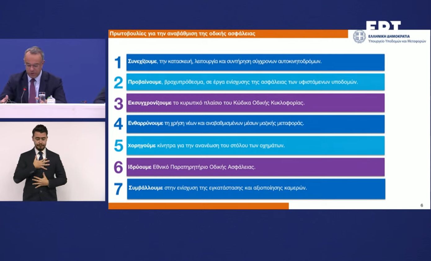 Ο κ. Σταϊκούρας τόνισε, μεταξύ άλλων, πως «το υπουργείο Υποδομών και Μεταφορών σε συνεργασία με άλλα υπουργεία έχει ως άμεση προτεραιότητα την αναβάθμιση της οδικής ασφάλειας και κατά συνέπεια τη μείωση των τροχαίων ατυχημάτων και τη βελτίωση της ποιότητας ζωής των πολιτών».