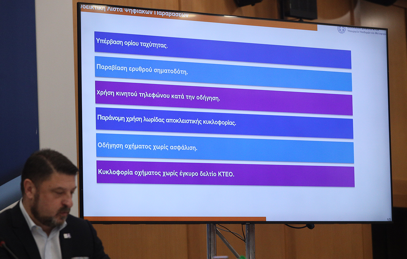 Οι παραβάσεις που θα βεβαιώνονται ψηφιακά, όπως έγινε γνωστό κατά τη διάρκεια της παρουσίασης, είναι: