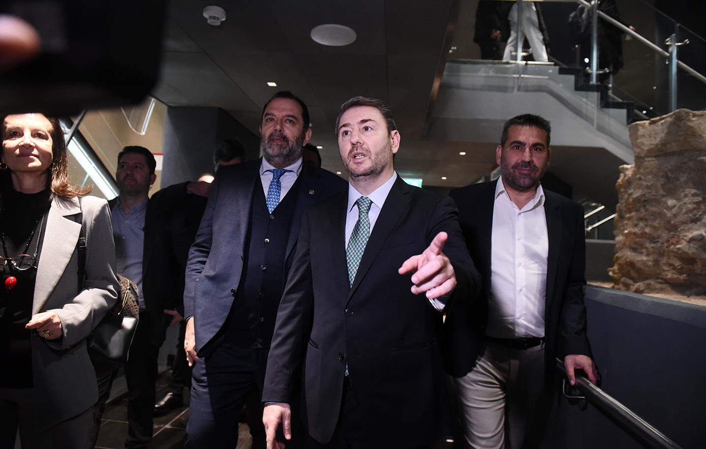 Στη συνέχεια, ο κ. Ανδρουλάκης επιβιβάστηκε σε συρμό του Μετρό και αποβιβάστηκε στον σταθμό Αγίας Σοφίας.