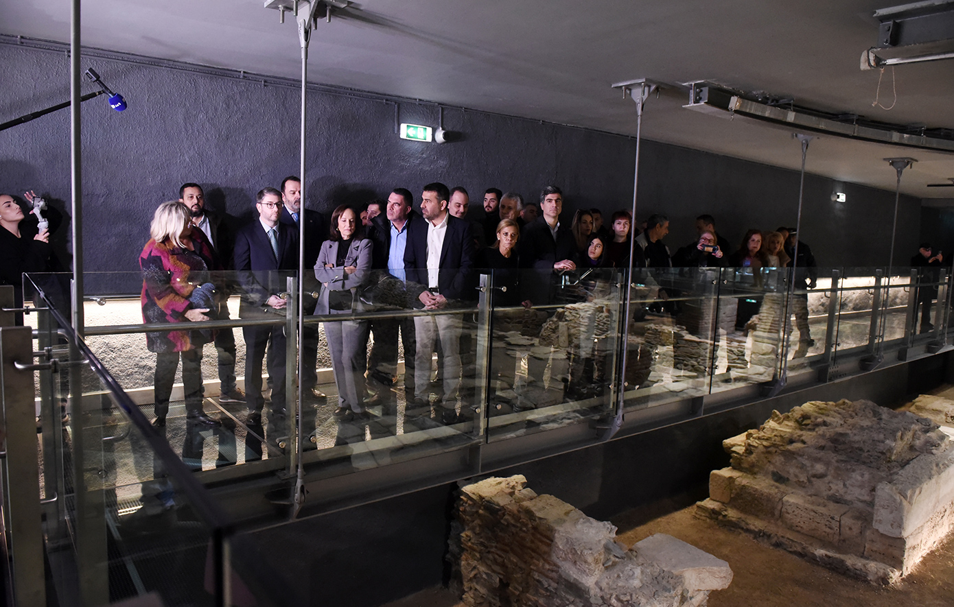 Στη συνέχεια επισκέφτηκε τον σταθμό Βενιζέλου και ξεναγήθηκε στον αρχαιολογικό χώρο από την προϊσταμένη της Εφορίας Αρχαιοτήτων Θεσσαλονίκης, Ελισάβετ Τσιγαρίδα.