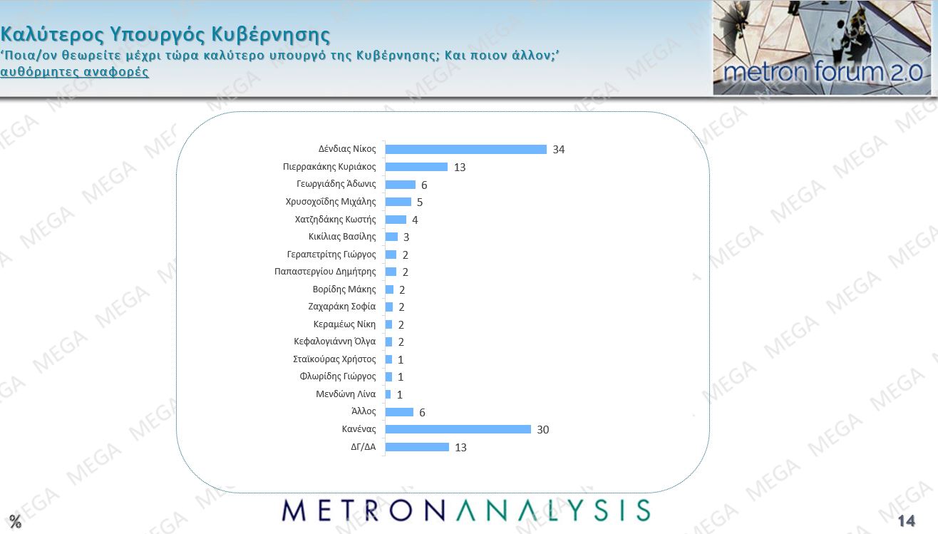 Σε μία ακόμη δημοσκόπηση, ο Νίκος Δένδιας εμφανίζεται ως δημοφιλέστερος υπουργός, με 34%, ενώ ακολουθούν ο Κυριάκος Πιερρακάκης με 13%, ο Άδωνις Γεωργιάδης με 6%, ο Μιχάλης Χρυσοχοΐδης με 5% και ο Κωστής Χατζηδάκης με 4%.
