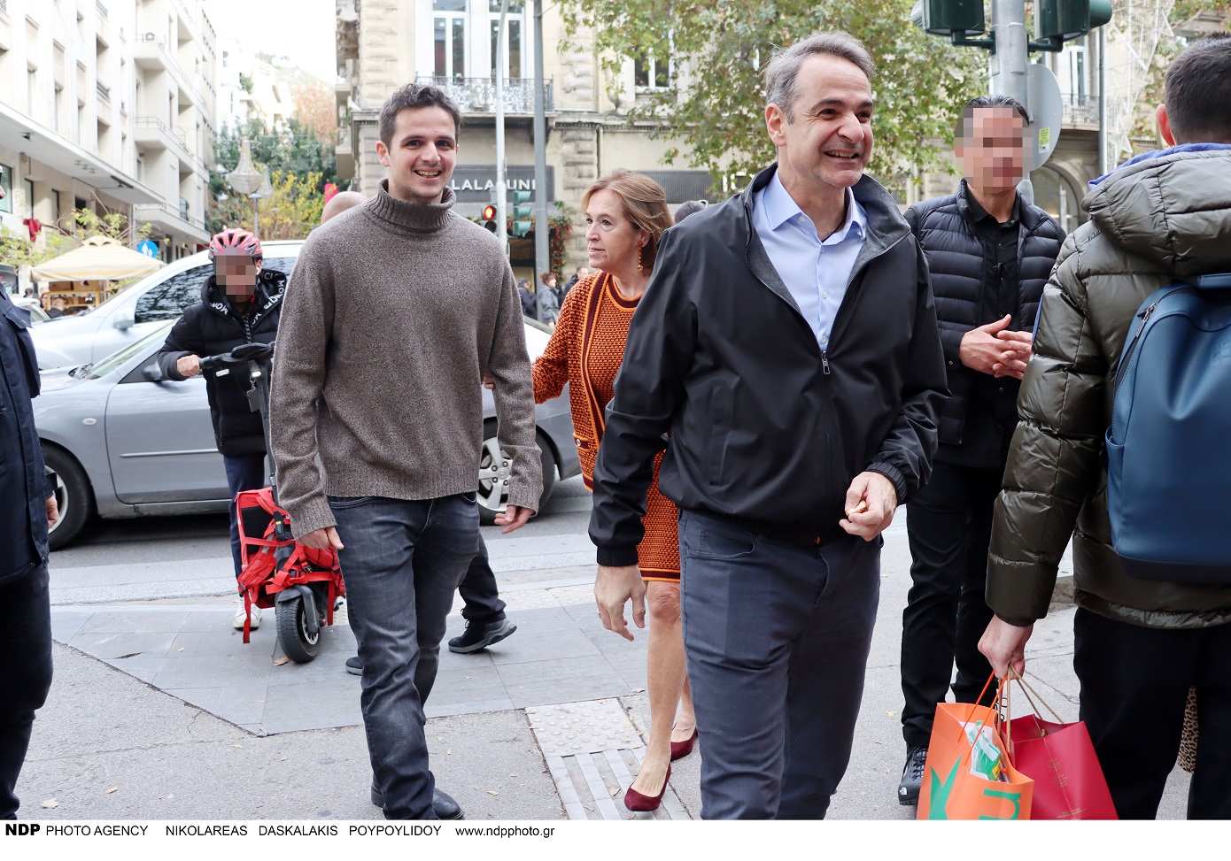 Ο πρωθυπουργός, αφού άκουσε τα κάλαντα μαζί με την οικογένειά του στο Μέγαρο Μαξίμου, περπάτησε στους εμπορικούς δρόμους της πρωτεύουσας, μαζί με τον γιο του Κωνσταντίνο.