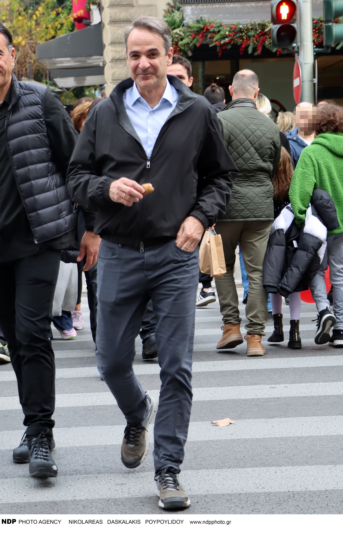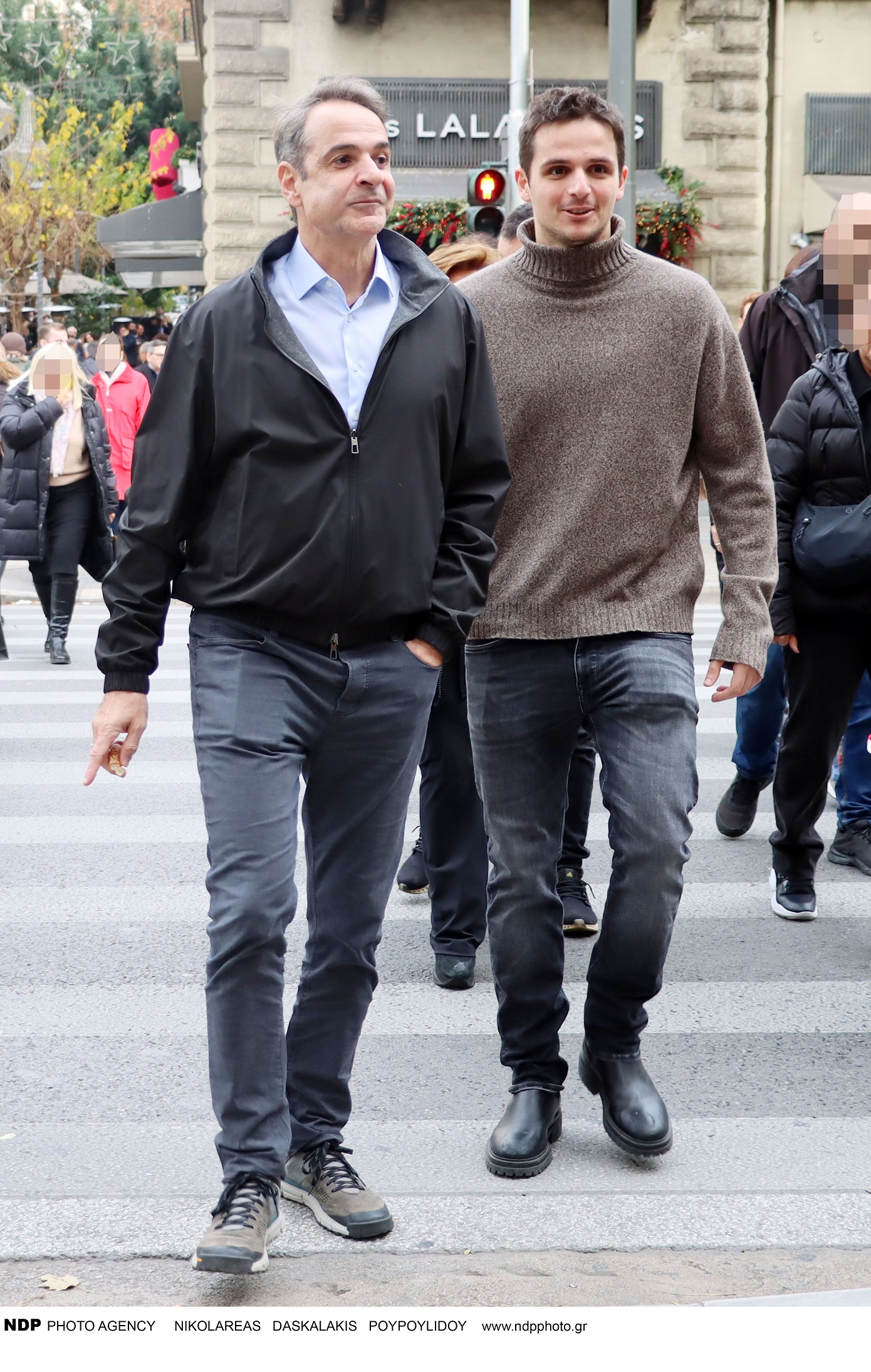 Έναν χαλαρωτικό περίπατο στην εορταστική Αθήνα έκανε ο Κυριάκος Μητσοτάκης.