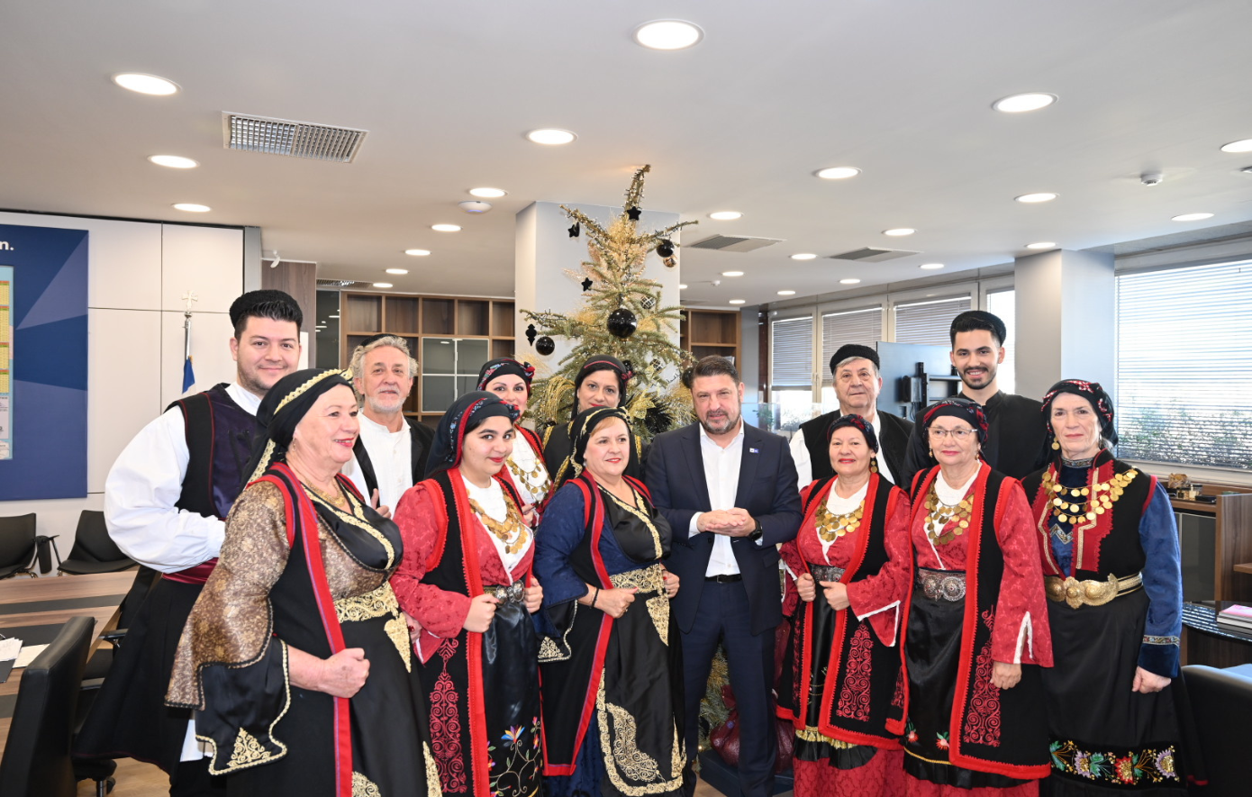 Εκπρόσωποι φορέων έψαλλαν στον Νίκο Χαρδαλιά τα παραδοσιακά πρωτοχρονιάτικα κάλαντα, με τον Περιφερειάρχη Αττικής να στέλνει το εορταστικό μήνυμά του.