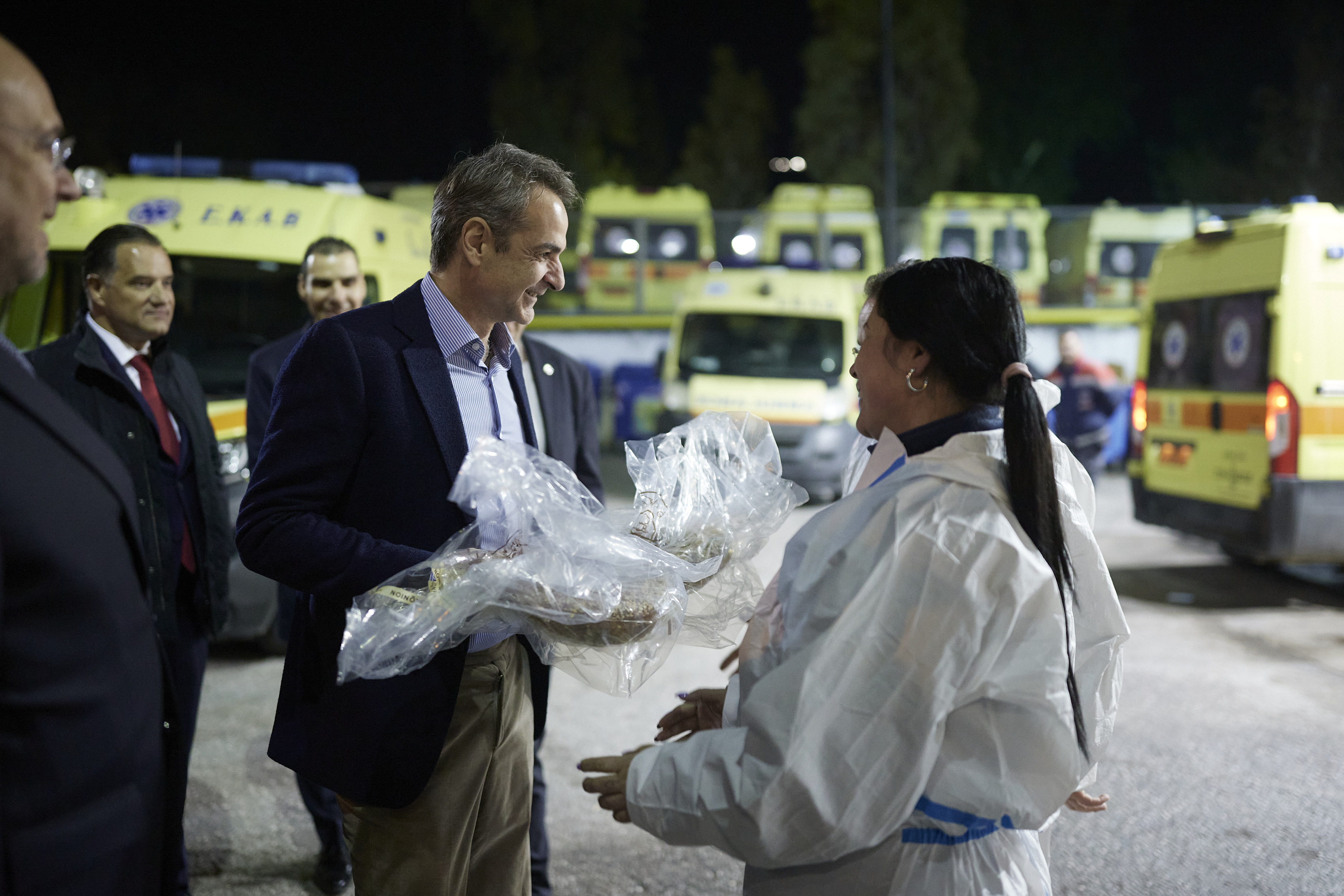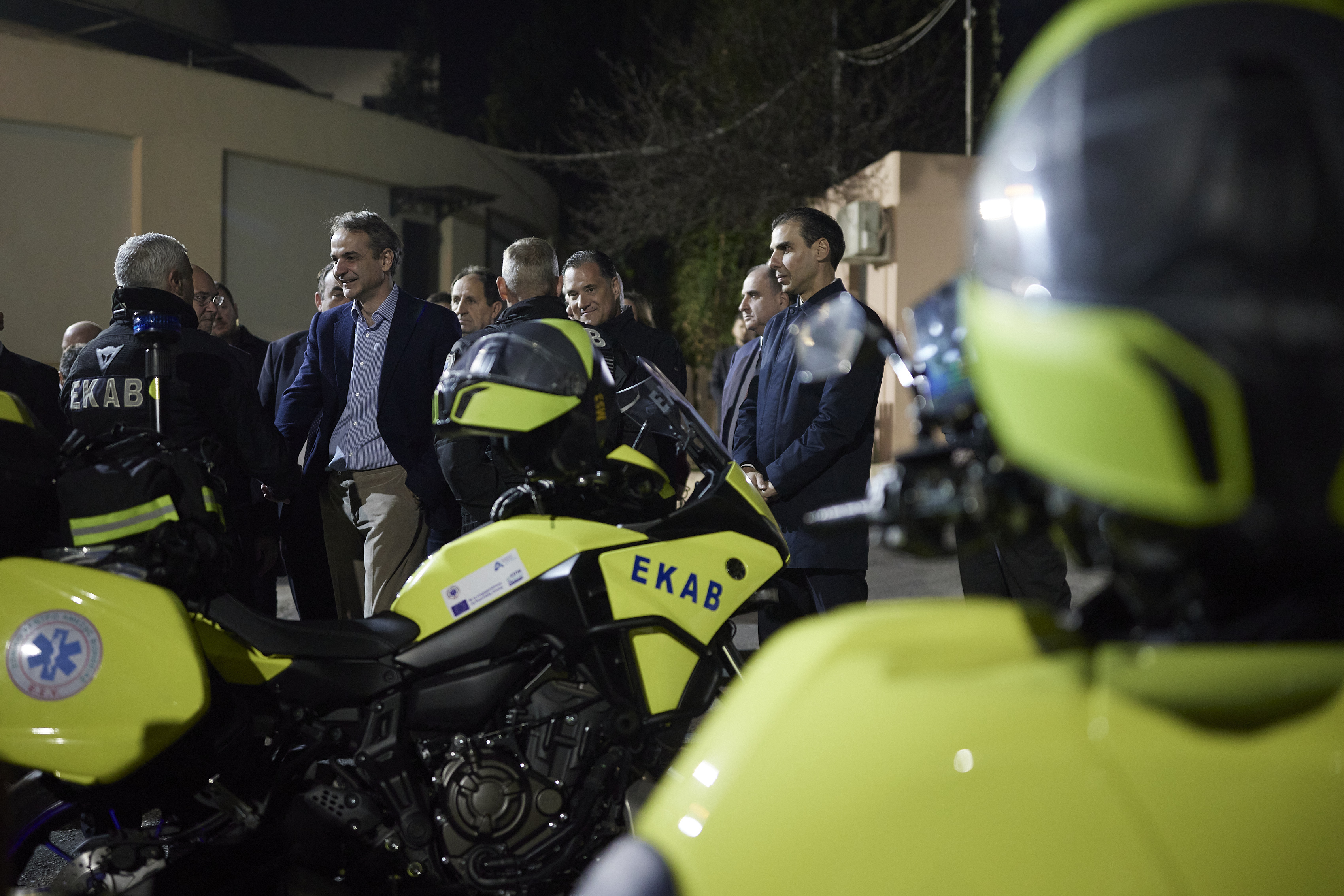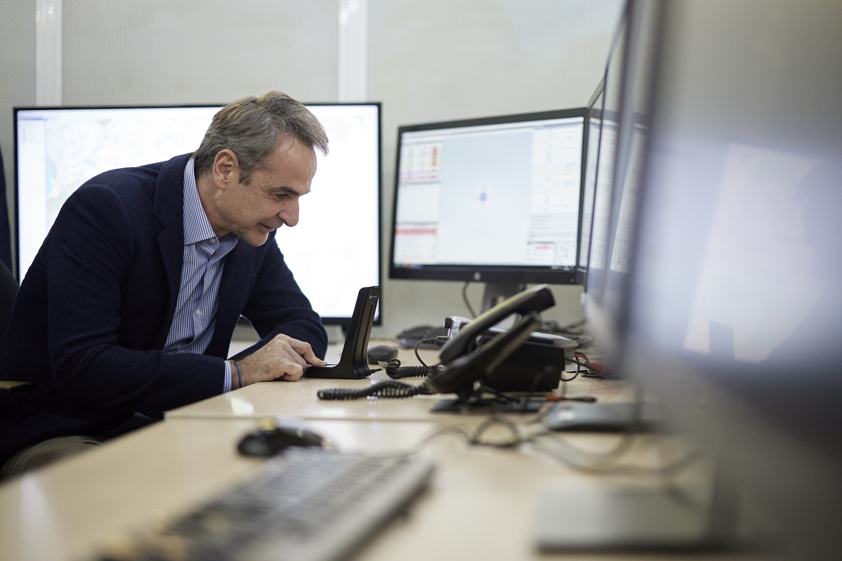 Ο Κυριάκος Μητσοτάκης επισκέφθηκε, λίγες ώρες πριν την αλλαγή του έτους, το Ενιαίο Συντονιστικό Κέντρο Επιχειρήσεων του ΕΚΑΒ.