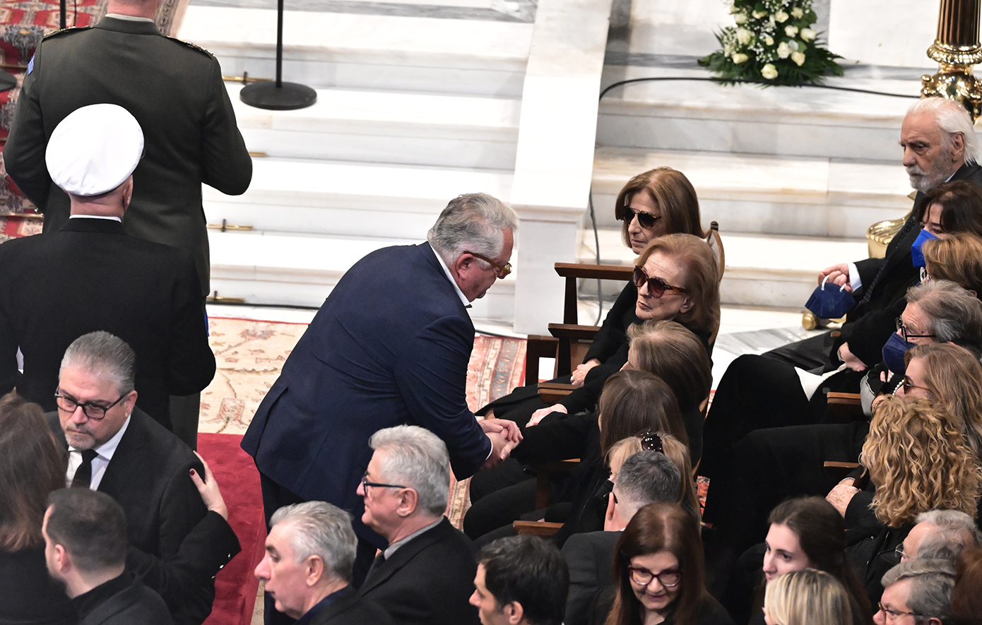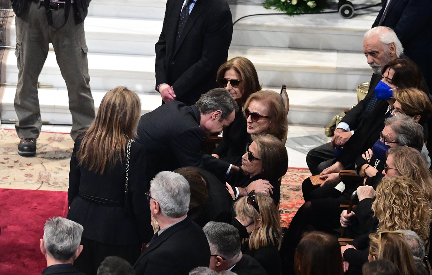 Στη Μητρόπολη Αθηνών έφτασε από νωρίς η Δάφνη Σημίτη, η σύζυγος του πρώην πρωθυπουργού, ο οποίος κηδεύεται αυτή την ώρα δημοσία δαπάνη και με τιμές εν ενεργεία πρωθυπουργού.