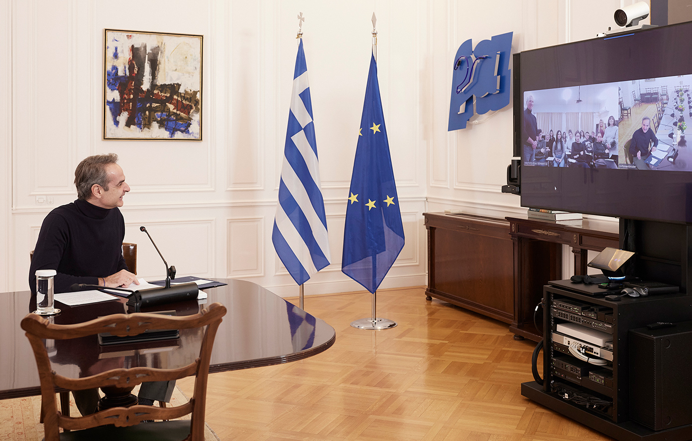 Ο Κυριάκος Μητσοτάκης είχε σήμερα τηλεδιάσκεψη με μαθητές του Πρότυπου Επαγγελματικού Λυκείου Περάματος, σε συνέχεια της επίσκεψής του στο σχολείο τον Δεκέμβριο του 2023, και είχε την ευκαιρία να απαντήσει σε ερωτήσεις για τη σχολική εφημερίδα τους.