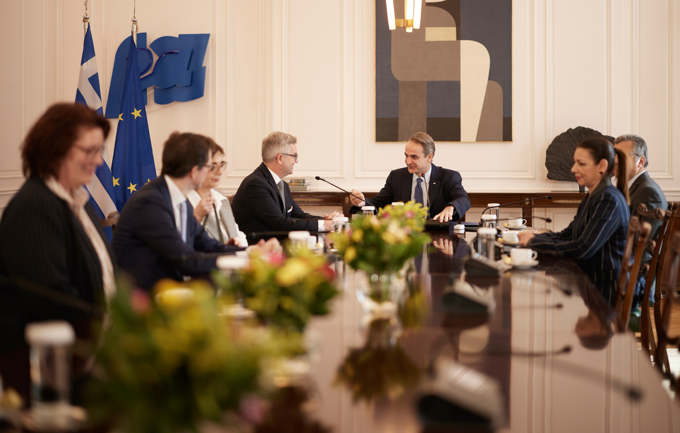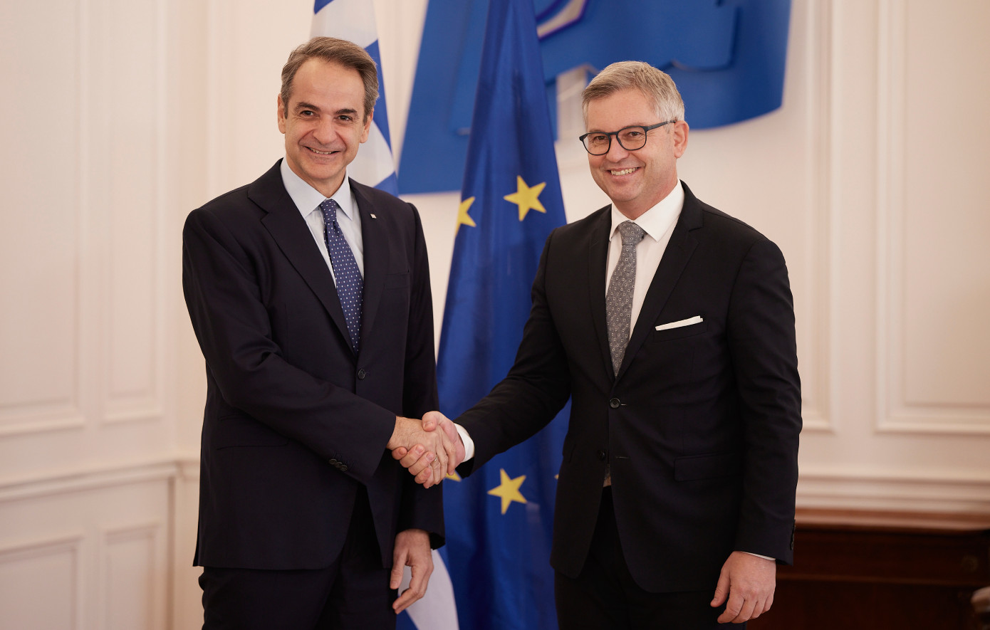 Ο πρωθυπουργός Κυριάκος Μητσοτάκης συναντήθηκε το μεσημέρι της Πέμπτης, με τον Επίτροπο Εσωτερικών Υποθέσεων και Μετανάστευσης της Ευρωπαϊκής Ένωσης Magnus Brunner, στο Μέγαρο Μαξίμου.