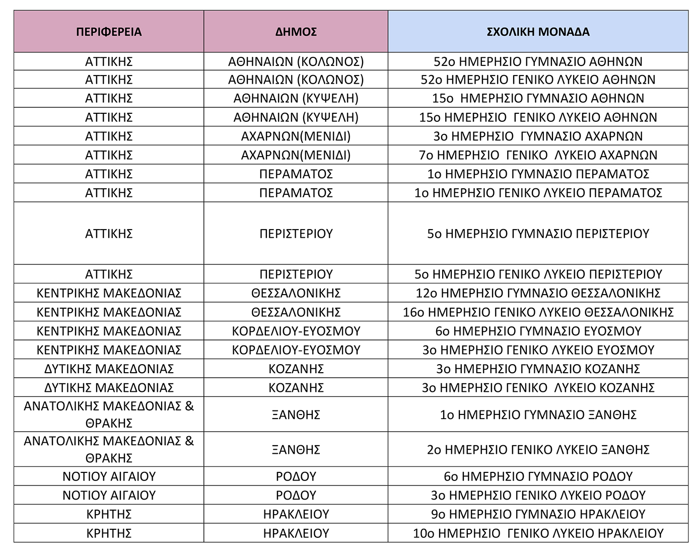 11. Αναλυτικά οι σχολικές μονάδες που θα μετατραπούν σε ΔΗΜ.Ω.Σ.
