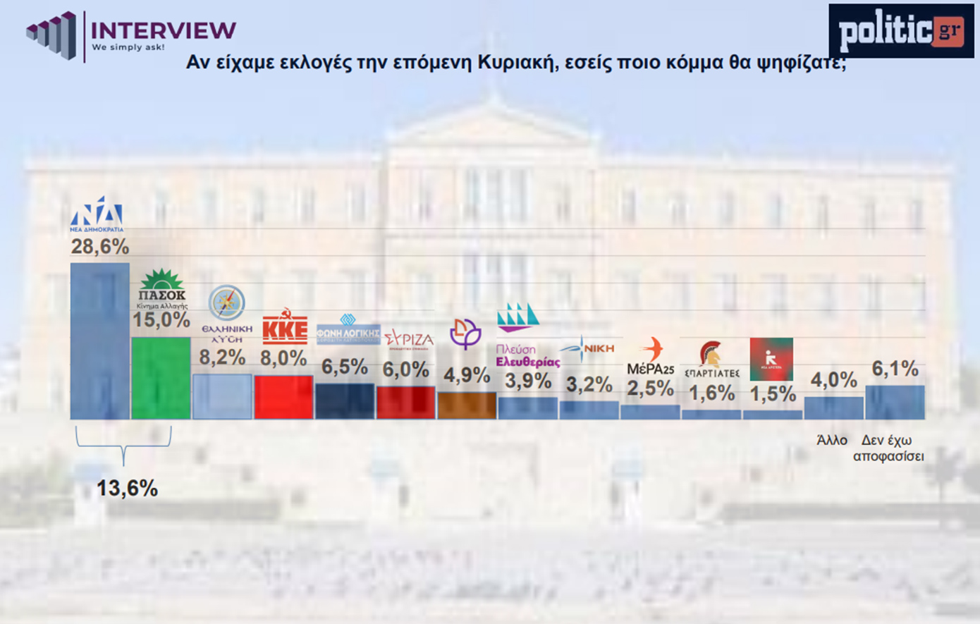 Το ποσοστό των αναποφάσιστων ψηφοφόρων είναι στο 6,1%.