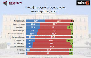 Πρώτη και σε τροχιά ανόδου είναι η Νέα Δημοκρατία, σύμφωνα με δημοσκόπηση της Interview για λογαριασμό της Politic.gr. Το ΠΑΣΟΚ παρουσιάζει πτωτική τάση, ενώ ο ΣΥΡΙΖΑ βρίσκεται πλέον στην έκτη θέση.