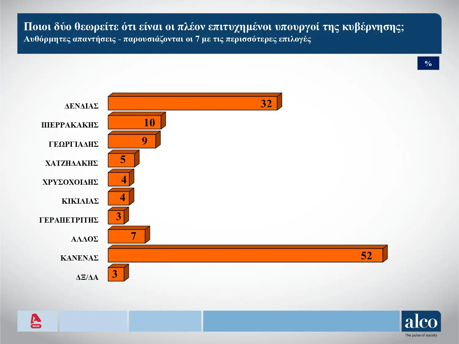 Πιο επιτυχημένοι υπουργοί κρίνονται ο Νίκος Δένδιας και ο Κυριάκος Πιερρακάκης.