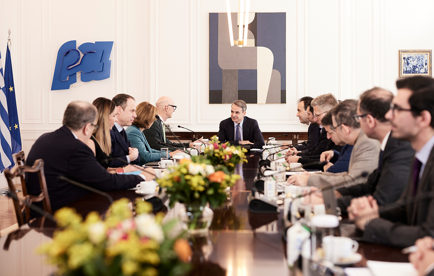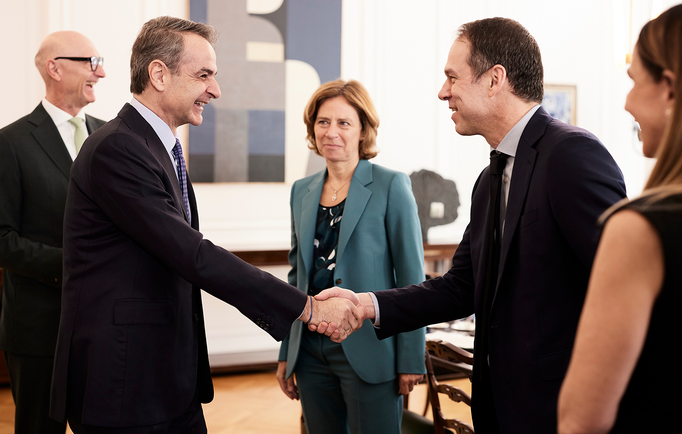 Ο πρωθυπουργός Κυριάκος Μητσοτάκης συναντήθηκε σήμερα στο Μέγαρο Μαξίμου με τον διευθύνοντα σύμβουλο του ομίλου Telekom, Timotheus Höttges. Κατά τη διάρκεια της συνάντησης ο πρωθυπουργός ενημερώθηκε για τα επενδυτικά σχέδια, ύψους 3 δισεκατομμυρίων ευρώ, που υλοποιεί στην Ελλάδα έως το 2027 ο όμιλος ΟΤΕ, μέλος της Telekom, με έμφαση στην επέκταση του δικτύου οπτικών ινών και 5G.