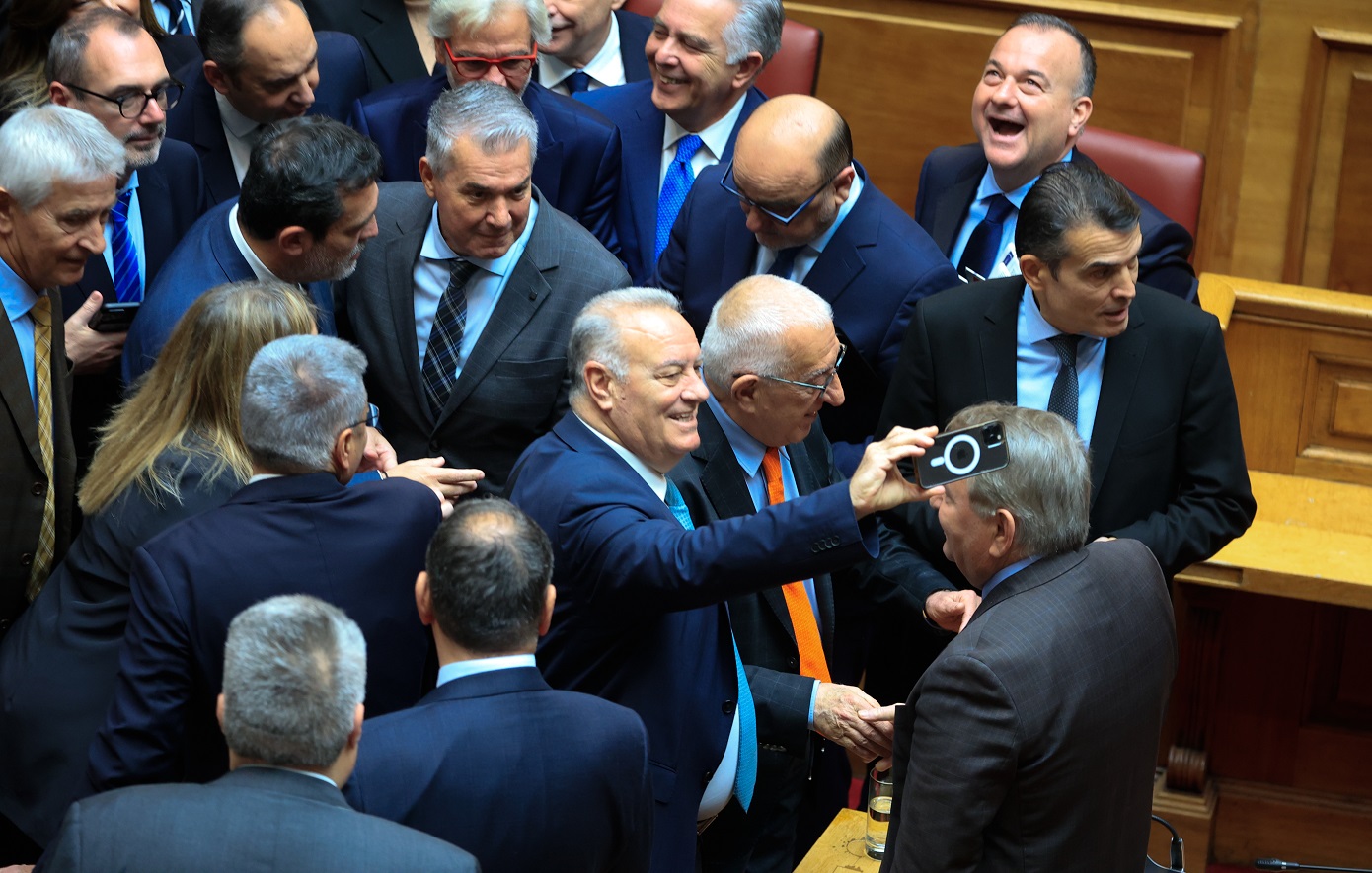 Να σημειωθεί, επίσης, ότι ο νέος πρόεδρος είχε ένα ολιγόλεπτο τετ α τετ με τον επικεφαλής του ΣΥΡΙΖΑ-Προοδευτική Συμμαχία Σωκράτη Φάμελλο, ενώ δίπλα τους βρισκόταν ο Δημήτρης Μάντζος από το ΠΑΣΟΚ-Κίνημα Αλλαγής. Θερμή χειραψία είχε ο κ. Κακλαμάνης και με τον πρόεδρο του ΠΑΣΟΚ-Κινήματος Αλλαγής Νίκο Ανδρουλάκη, που χθες είχε δώσει γραμμή στους βουλευτές του προκειμένου να υπερψηφίσουν τον εκλεκτό της Νέας Δημοκρατίας για το τρίτο τη τάξει πολιτειακό αξίωμα της χώρας.