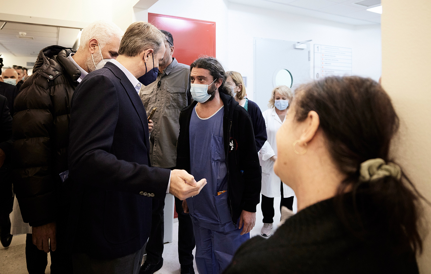 Παράλληλα, συνομίλησε με το ιατρικό και νοσηλευτικό προσωπικό καθώς και με ασθενείς για τον σχεδιασμό της κυβέρνησης σχετικά με την αναβάθμιση του Εθνικού Συστήματος Υγείας, με ενίσχυση του προσωπικού, προμήθεια νέου εξοπλισμού και εκσυγχρονισμό των κτιριακών υποδομών.